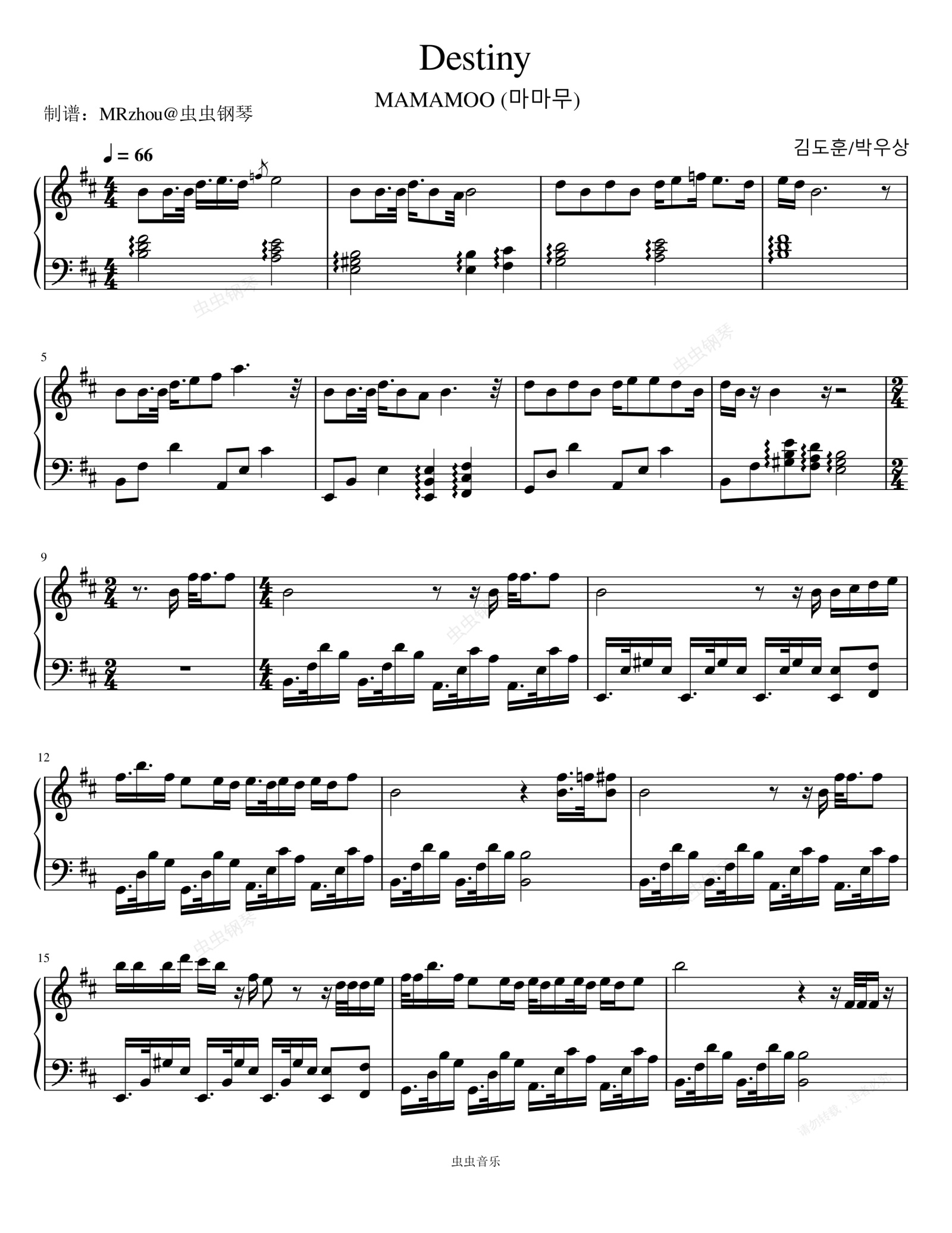 钢琴谱:Destiny - MAMAMOO (마마무)