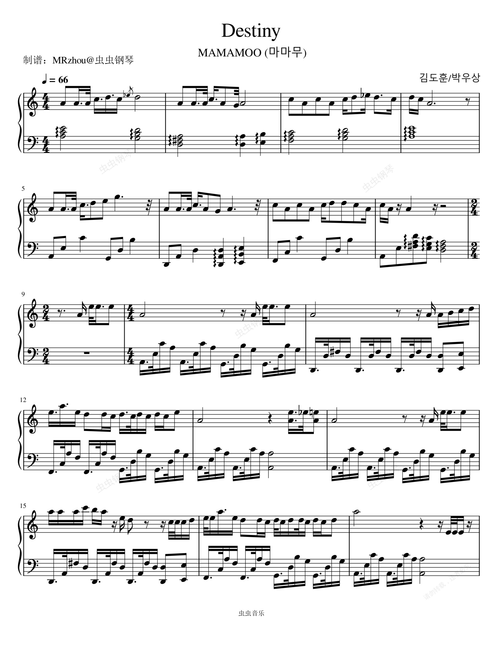 钢琴谱:Destiny - MAMAMOO (마마무)