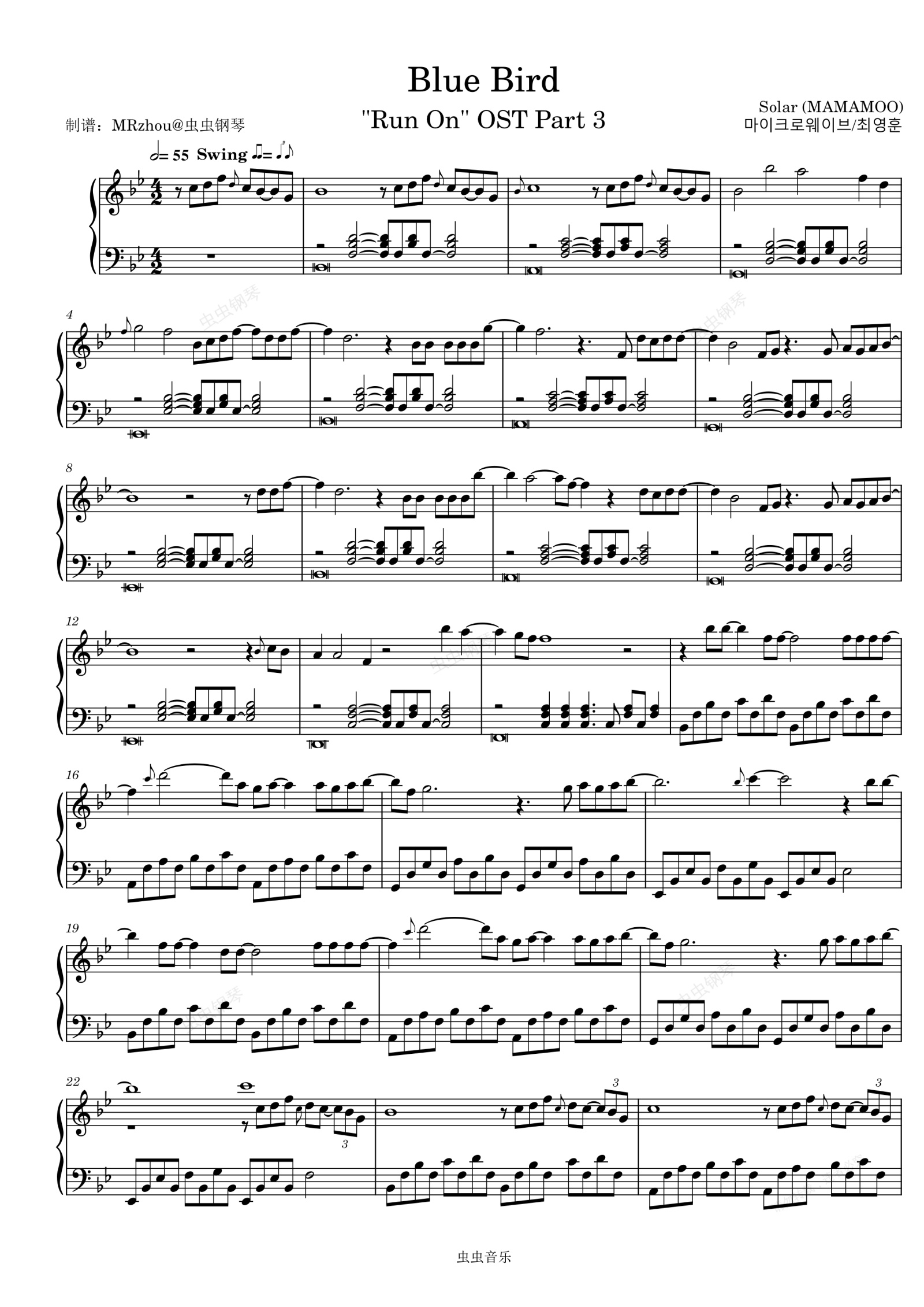 钢琴谱:Blue Bird - 颂乐 (솔라)