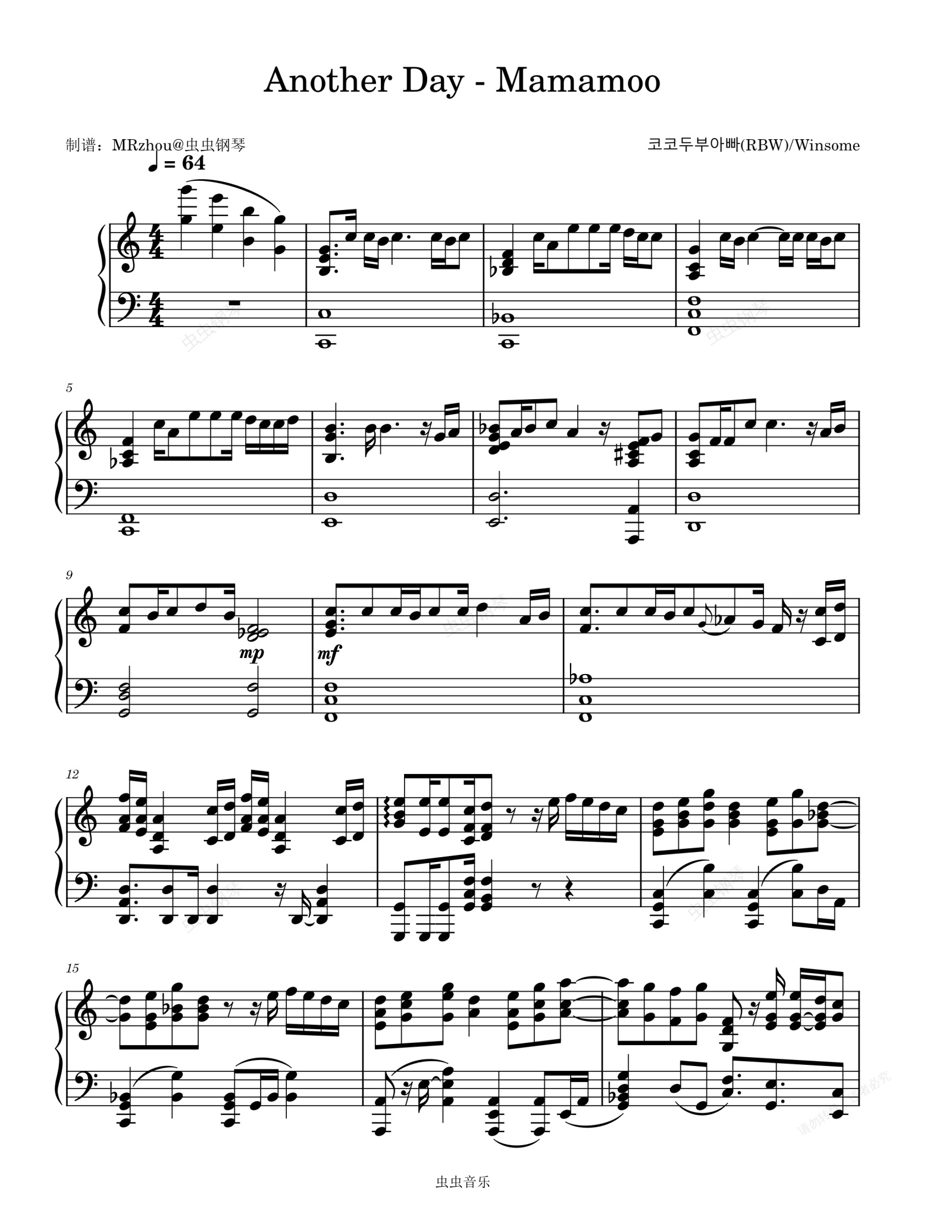 钢琴谱:내일의 너, 오늘의 나 (Another Day) - MAMAMOO (마마무)