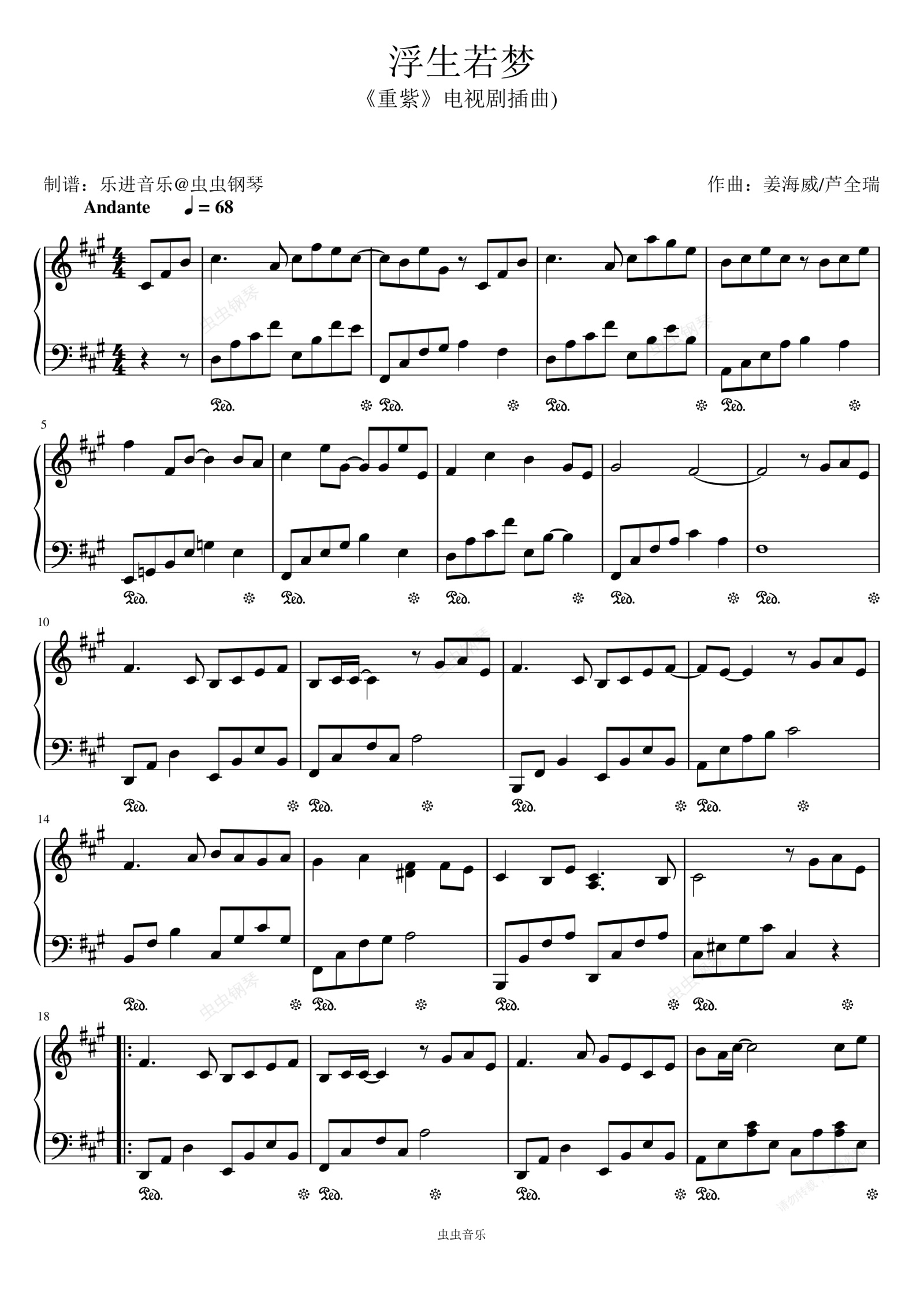 钢琴谱:《浮生若梦》原调重紫电视剧插曲