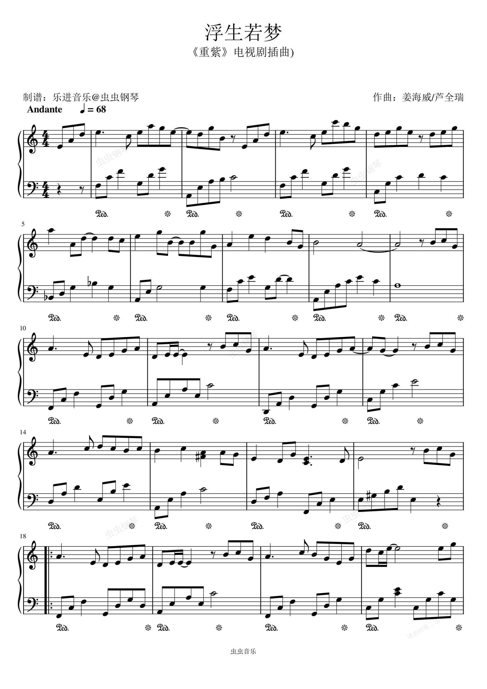 钢琴谱:《浮生若梦》C调