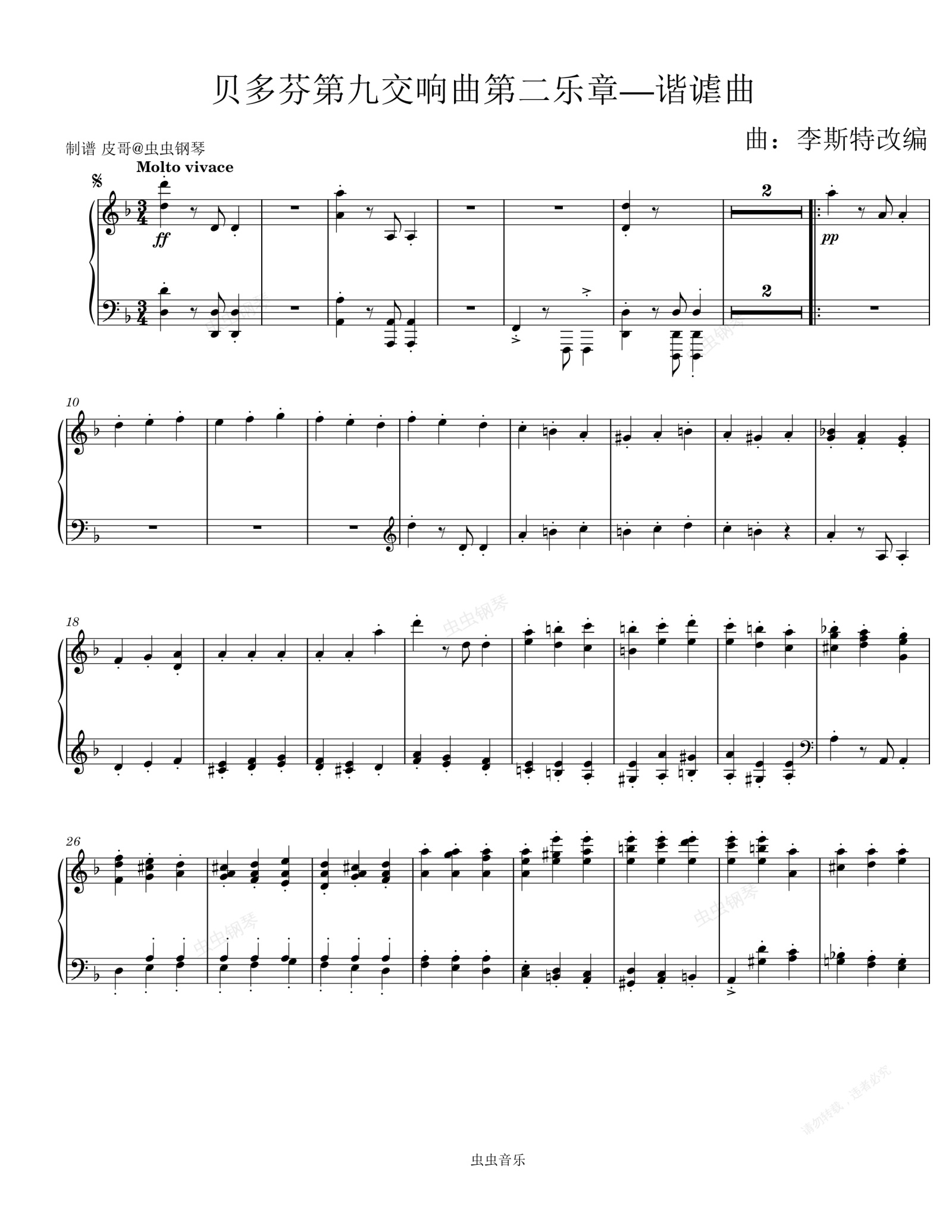 钢琴谱:贝多芬第九交响曲第二乐章—谐谑曲 F大调 原版钢琴谱