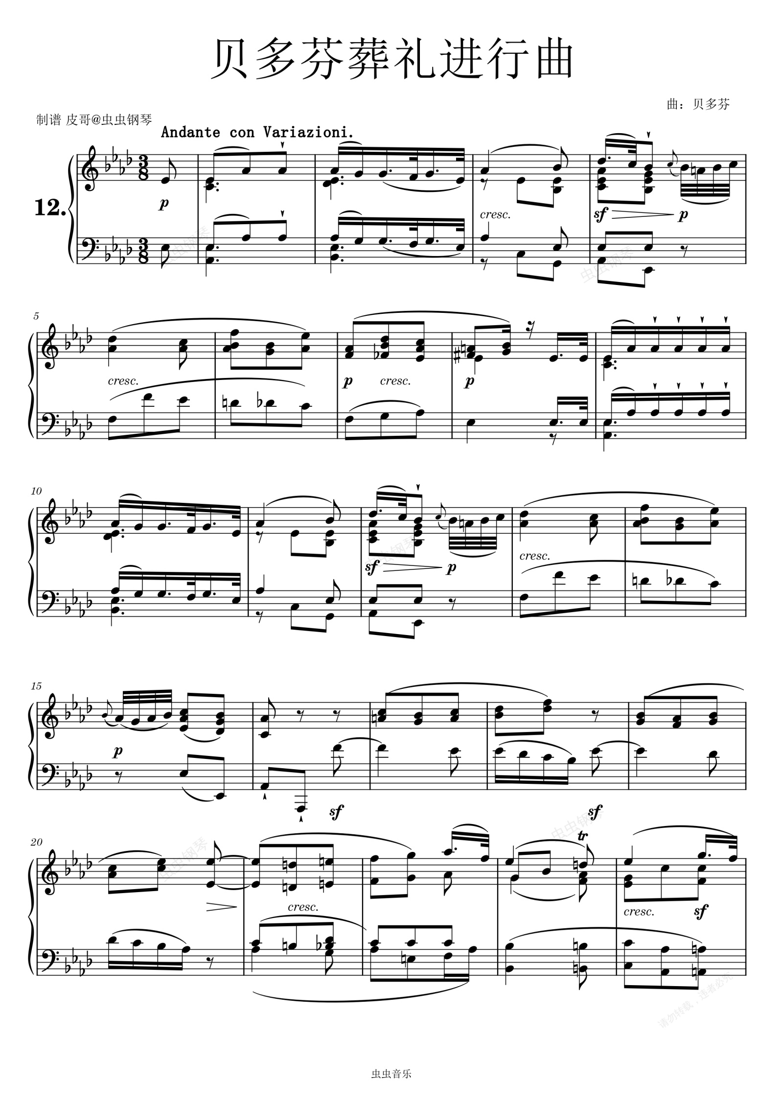钢琴谱:贝多芬葬礼进行曲 降A大调 原版钢琴谱