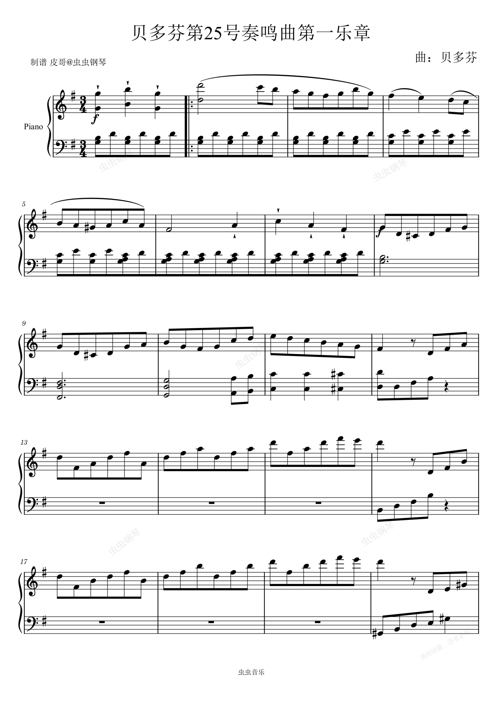 钢琴谱:贝多芬第25号奏鸣曲第一乐章 F大调 原版钢琴谱