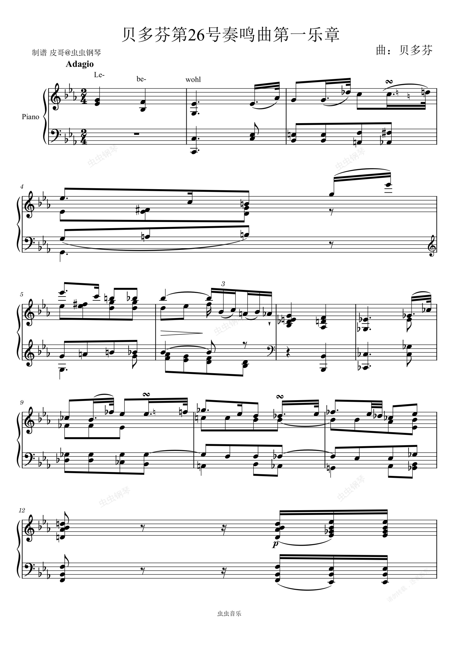 钢琴谱:贝多芬第26号奏鸣曲第一乐章 降E大调 原版钢琴谱