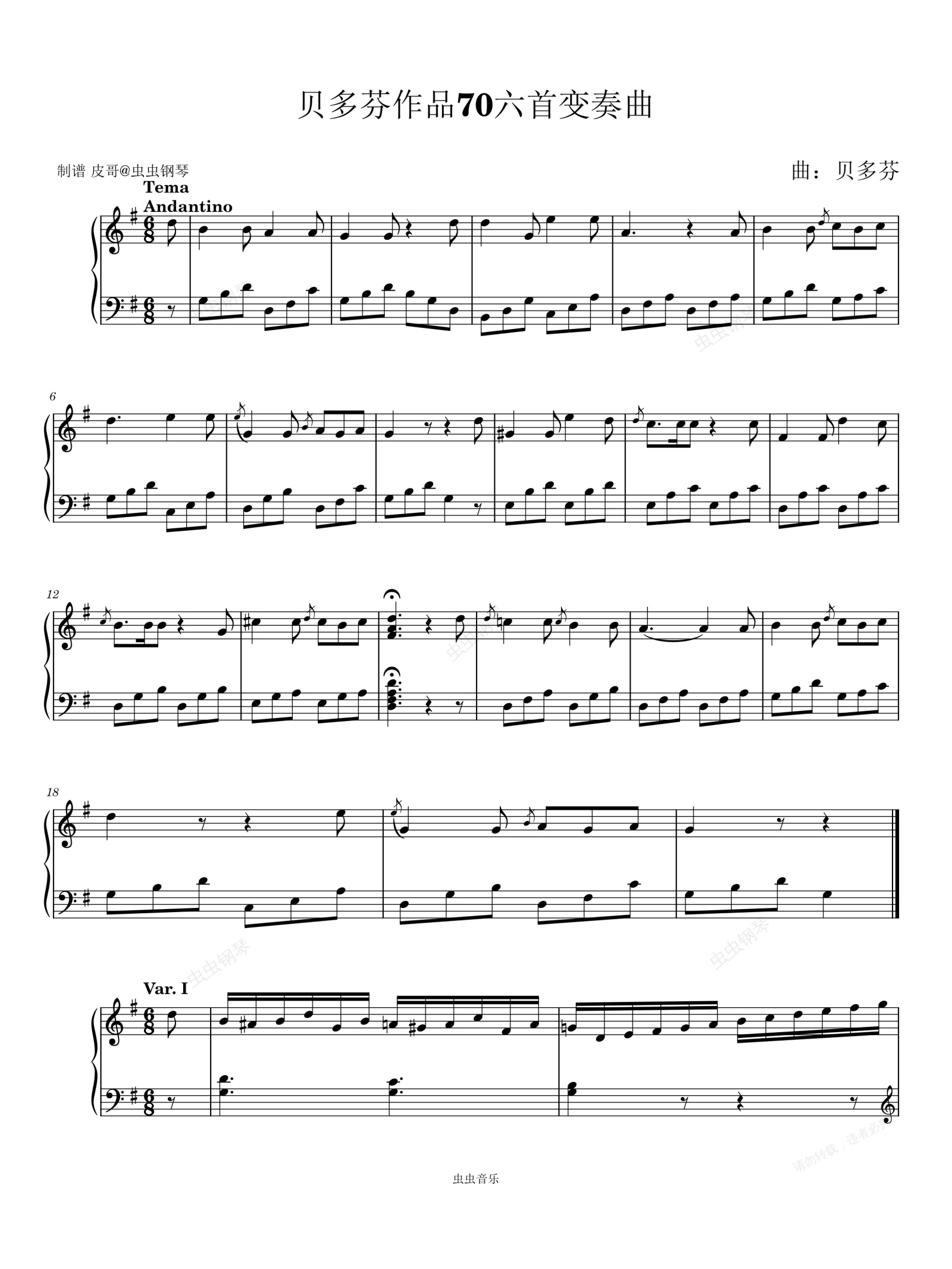 钢琴谱:贝多芬作品70六首变奏曲 G大调 原版钢琴谱