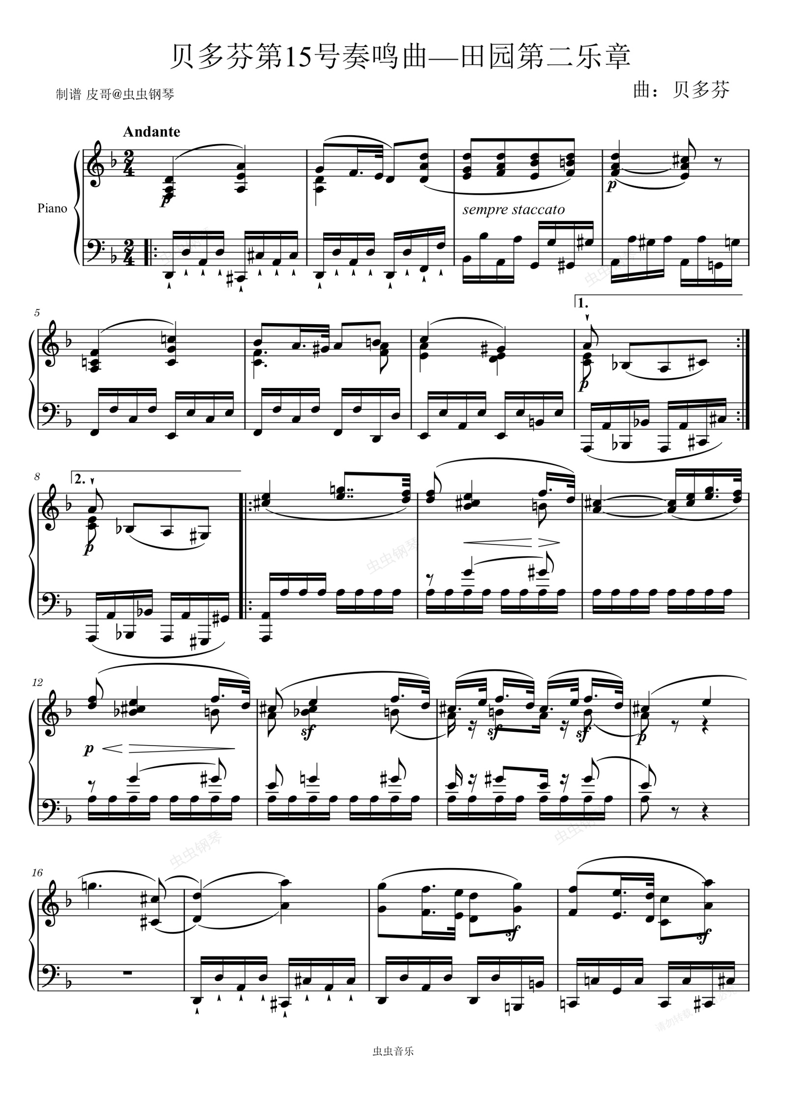 钢琴谱:贝多芬第15号奏鸣曲—田园第二乐章 F大调 原版钢琴谱