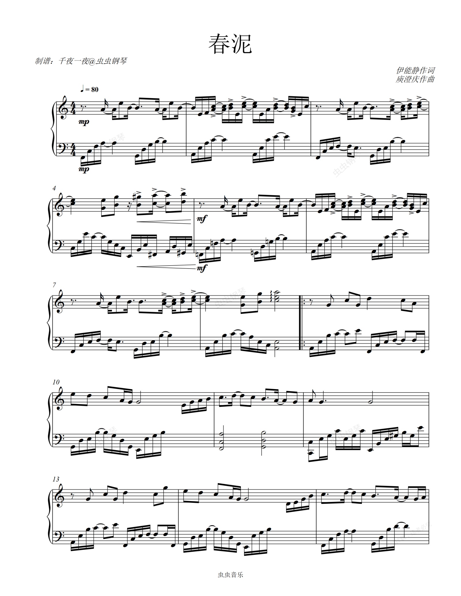 钢琴谱:庾澄庆经典歌曲《春泥》 居然是伊能静写给他的 难怪他唱的如此深情