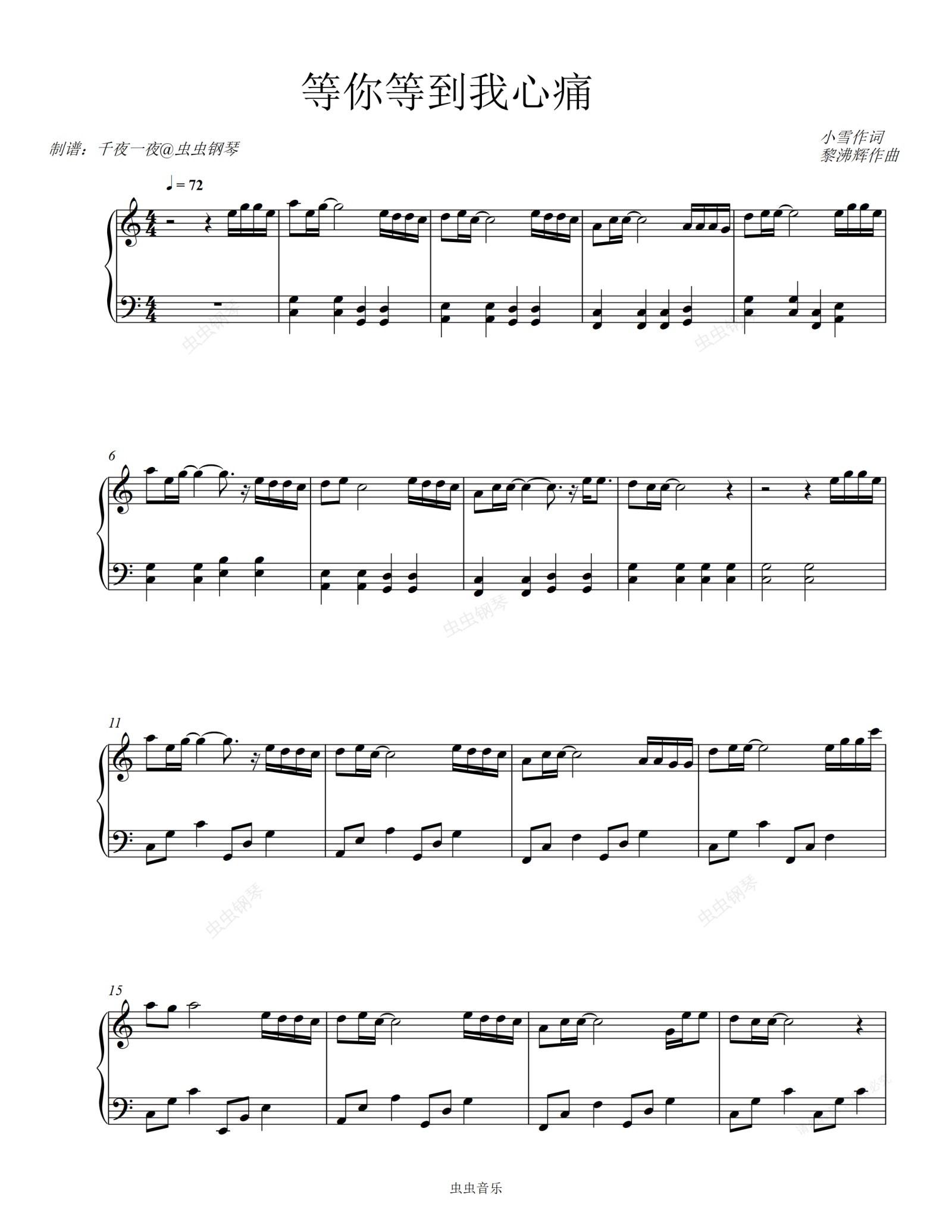 钢琴谱:张学友《等你等到我心痛》完整版,听的痛彻心扉