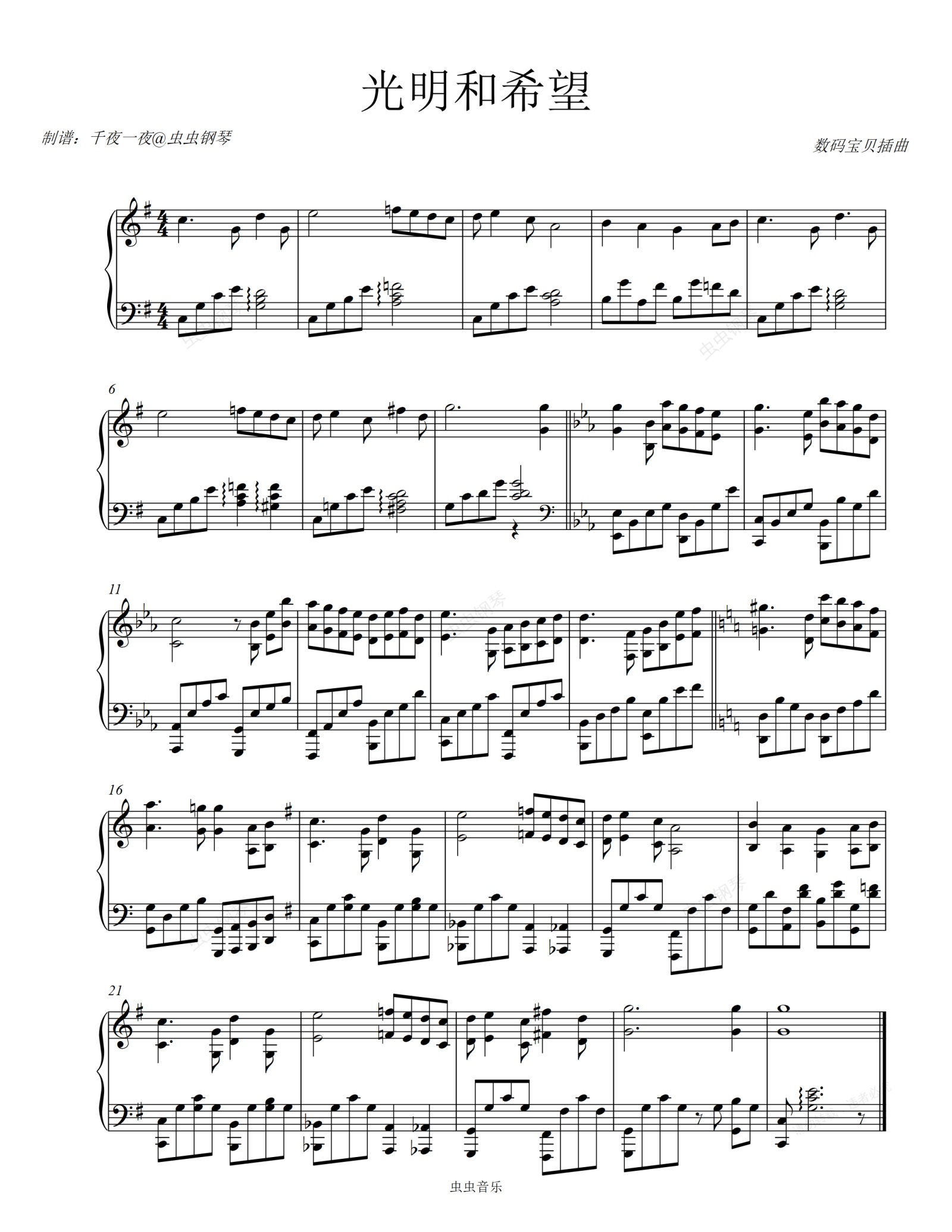 钢琴谱:数码宝贝,光明与希望,唤起你尘封的记忆