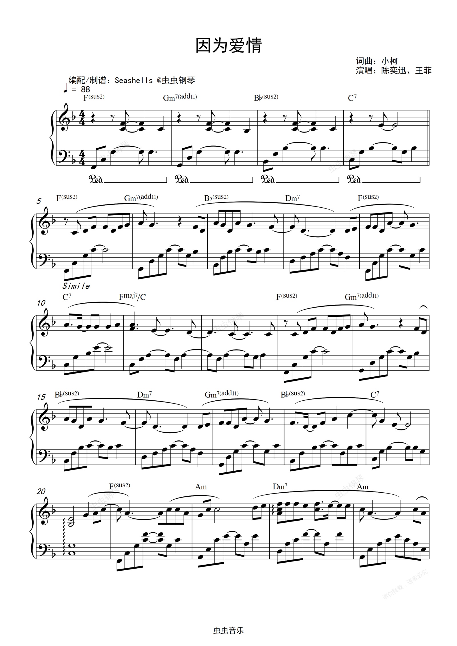 钢琴谱:陈奕迅、王菲-《因为爱情》精编钢琴独奏