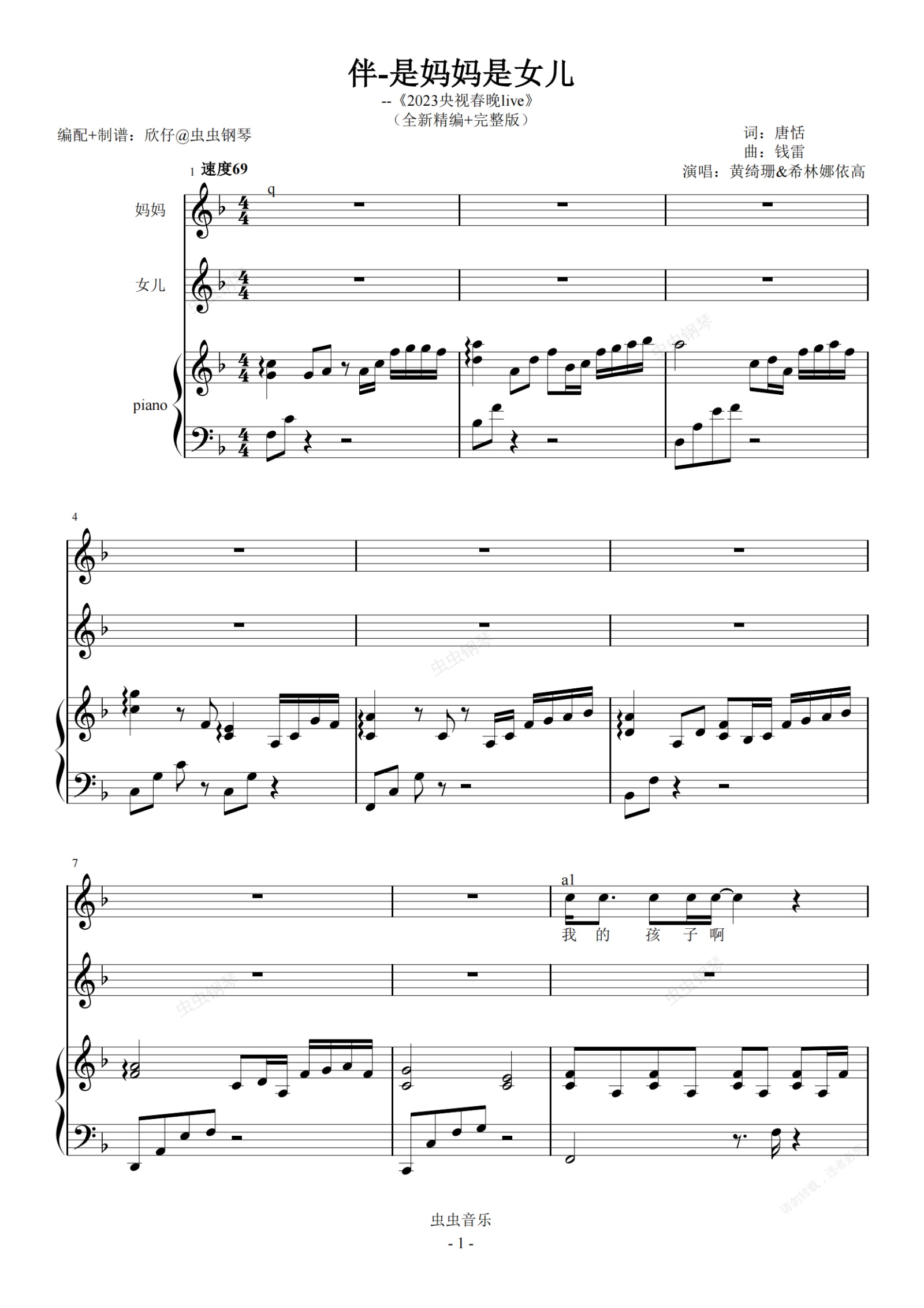 钢琴谱:伴-《是妈妈是女儿》(黄绮珊&希林娜依高、全新精编+完整版)