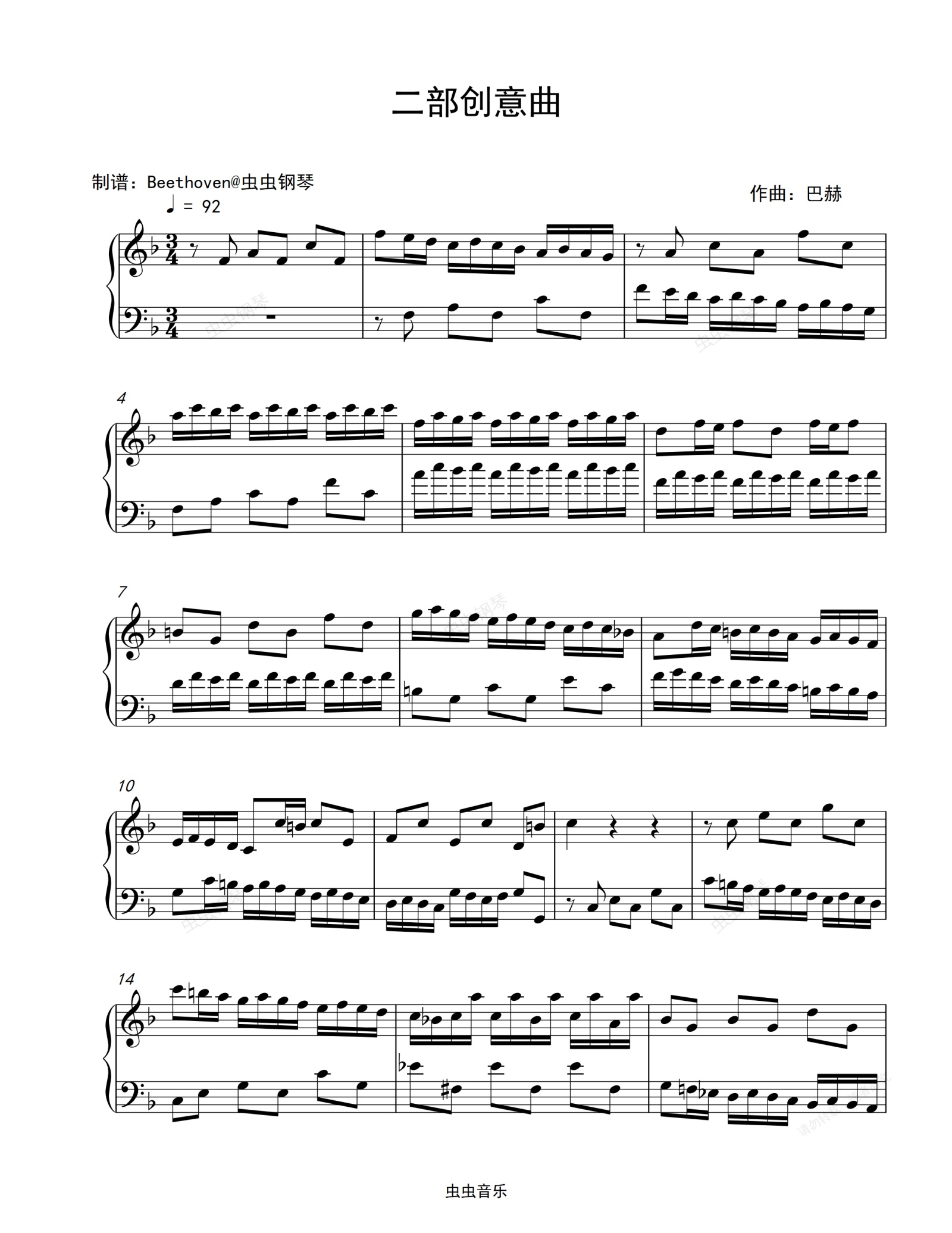 钢琴谱:二部创意曲-巴赫