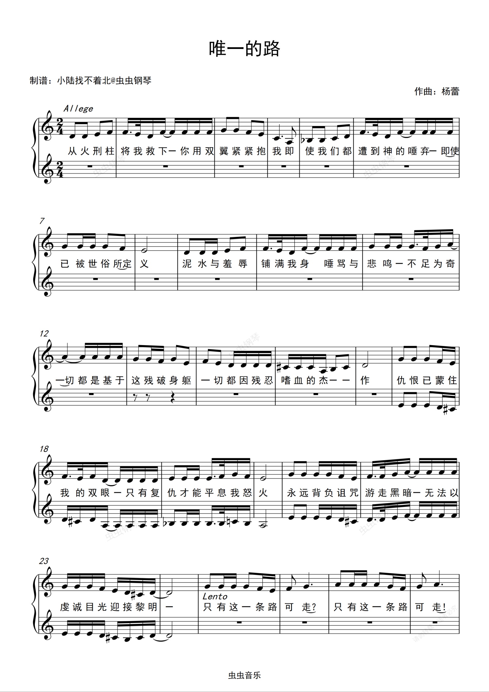 钢琴谱:唯一的路——原创音乐剧《永恒的太阳》男女对唱选段