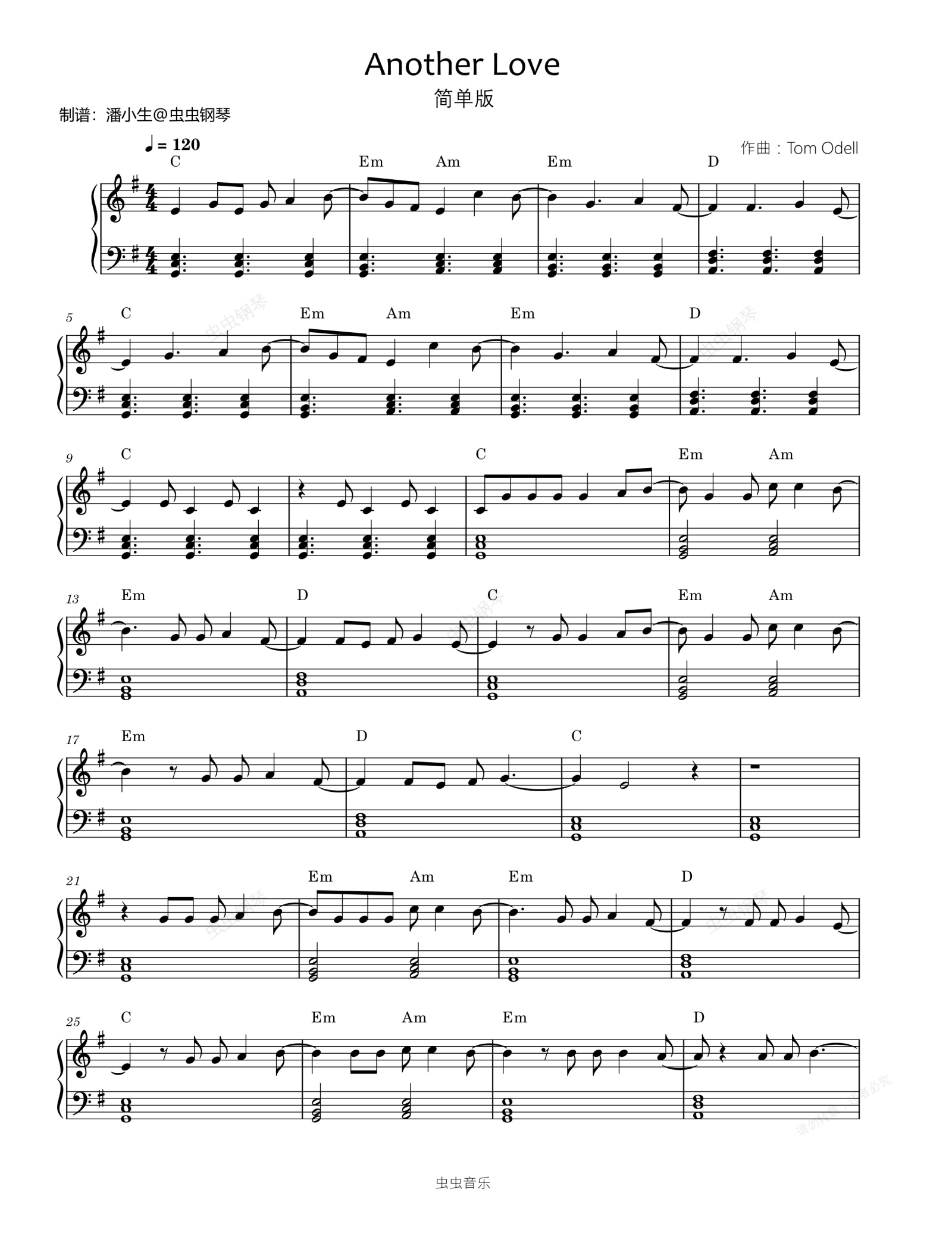 钢琴谱:Another love 简单独奏版 Tom Odell 带和弦标记