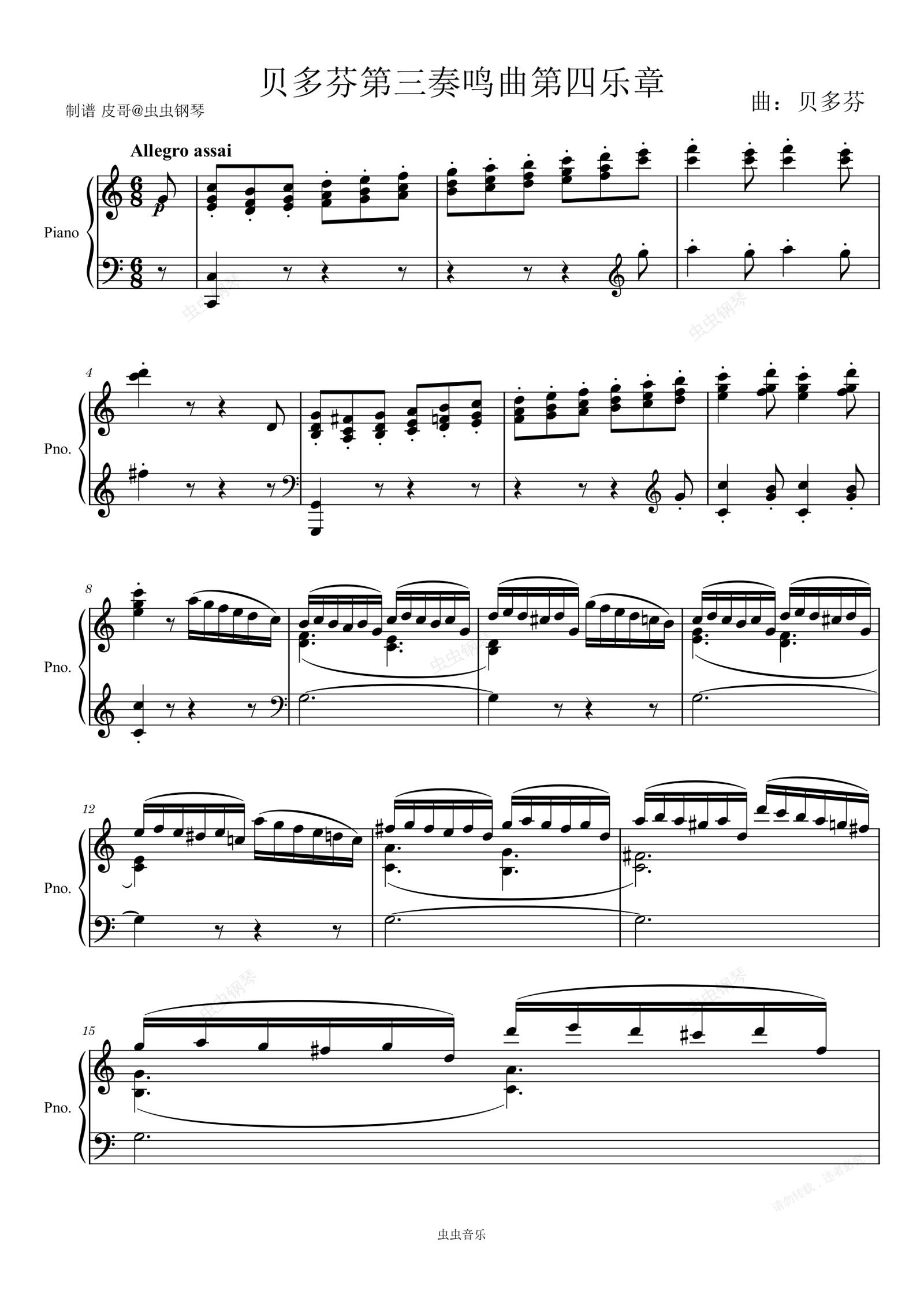 钢琴谱:贝多芬第三奏鸣曲第四乐章 C大调 原版钢琴谱