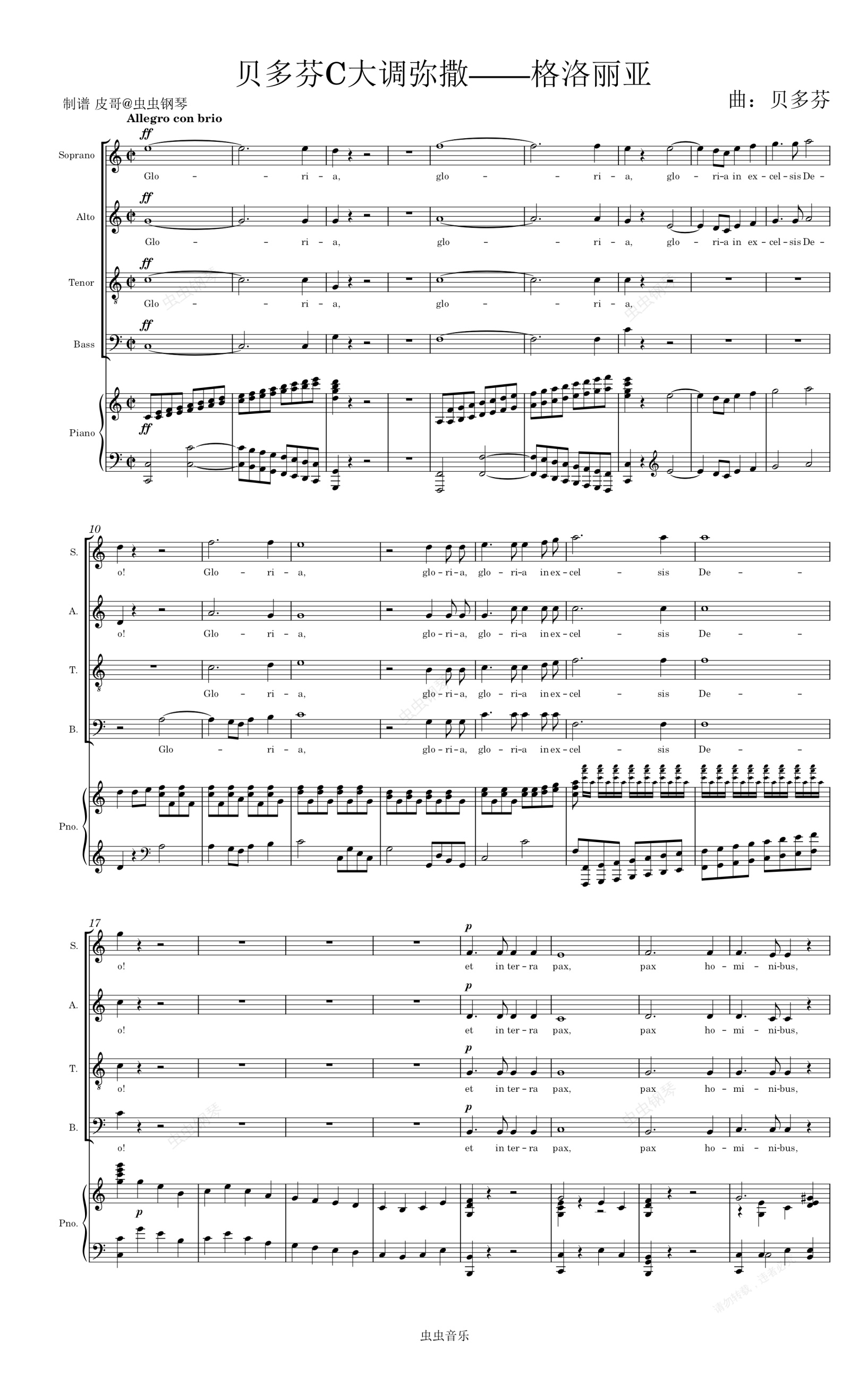 钢琴谱:贝多芬C大调弥撒——格洛丽亚 原版总谱