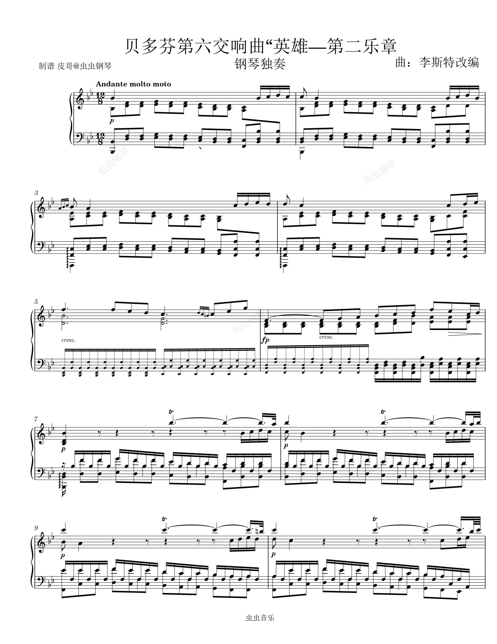 钢琴谱:贝多芬第六交响曲“英雄—第二乐章(钢琴独奏)  降B大调 原版钢琴谱