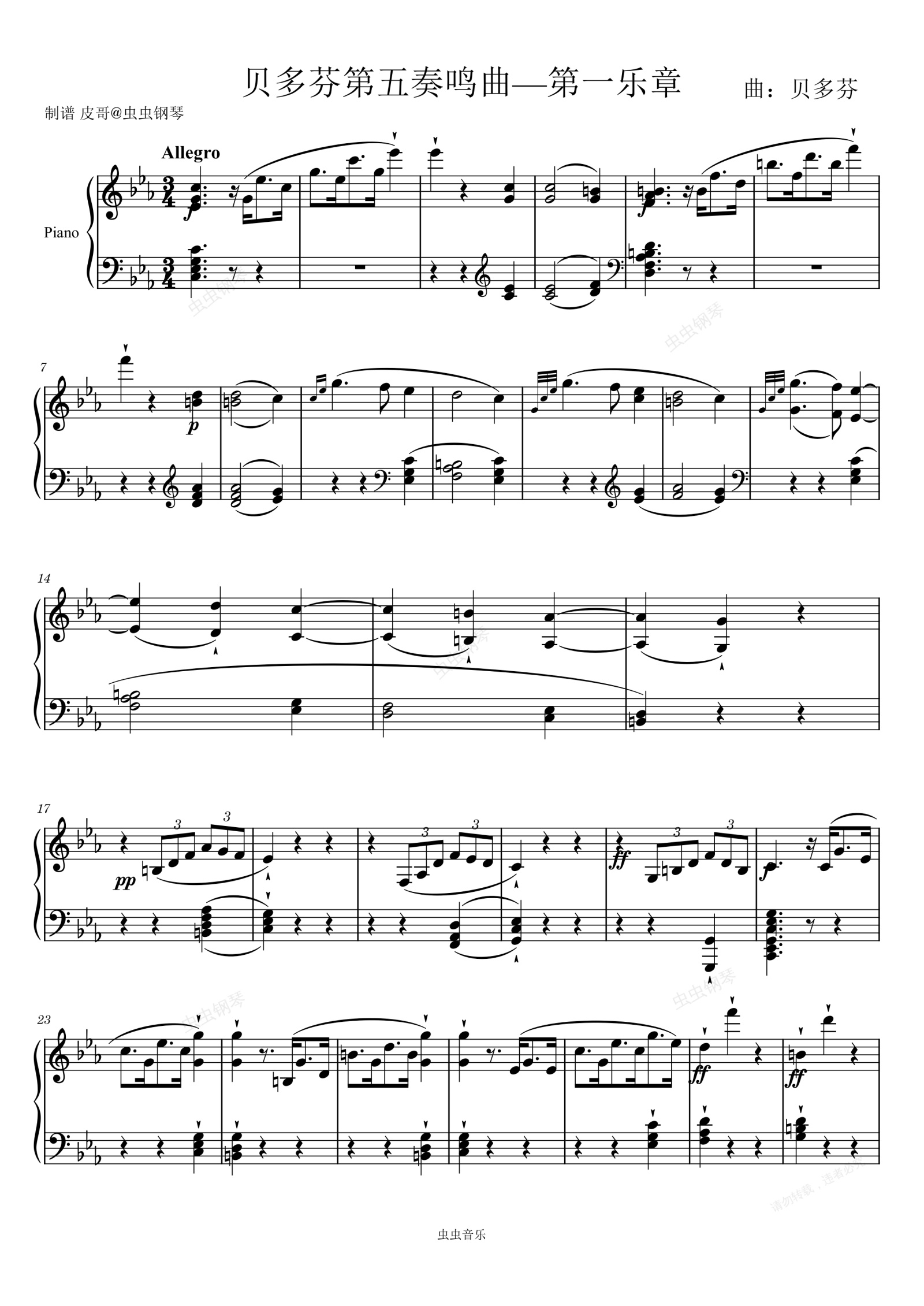 钢琴谱:贝多芬第五奏鸣曲—第一乐章  降E大调 原版钢琴谱