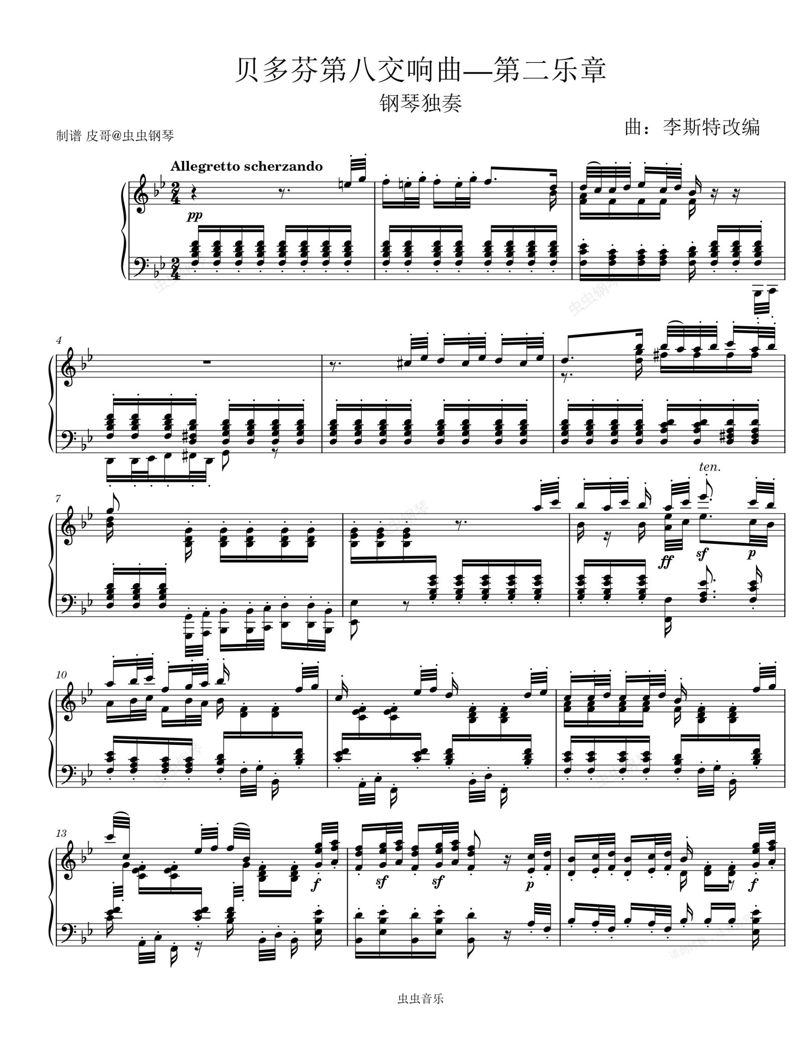 钢琴谱:贝多芬第八交响曲第二乐章(钢琴独奏) 降B大调 原版钢琴谱