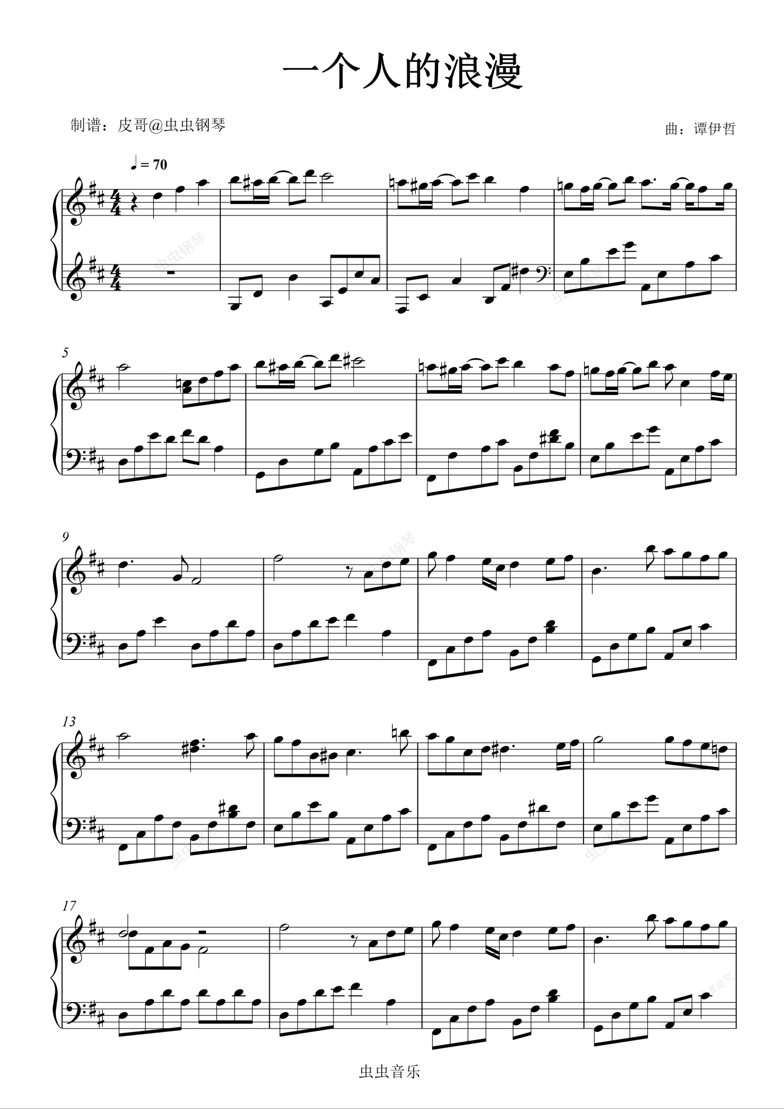 钢琴谱:一个人的浪漫 零基础版本