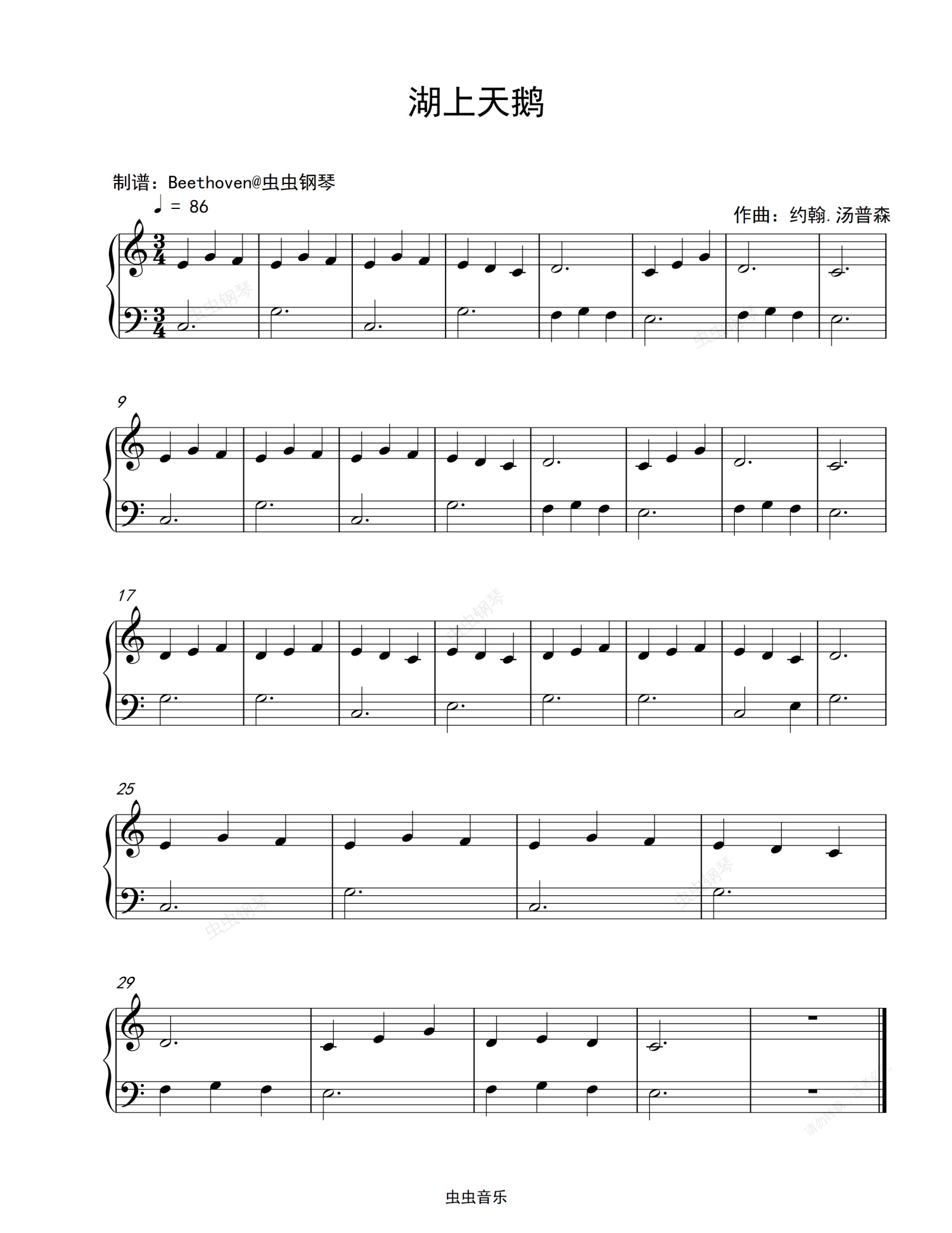 钢琴谱:湖上天鹅-约翰·汤普森