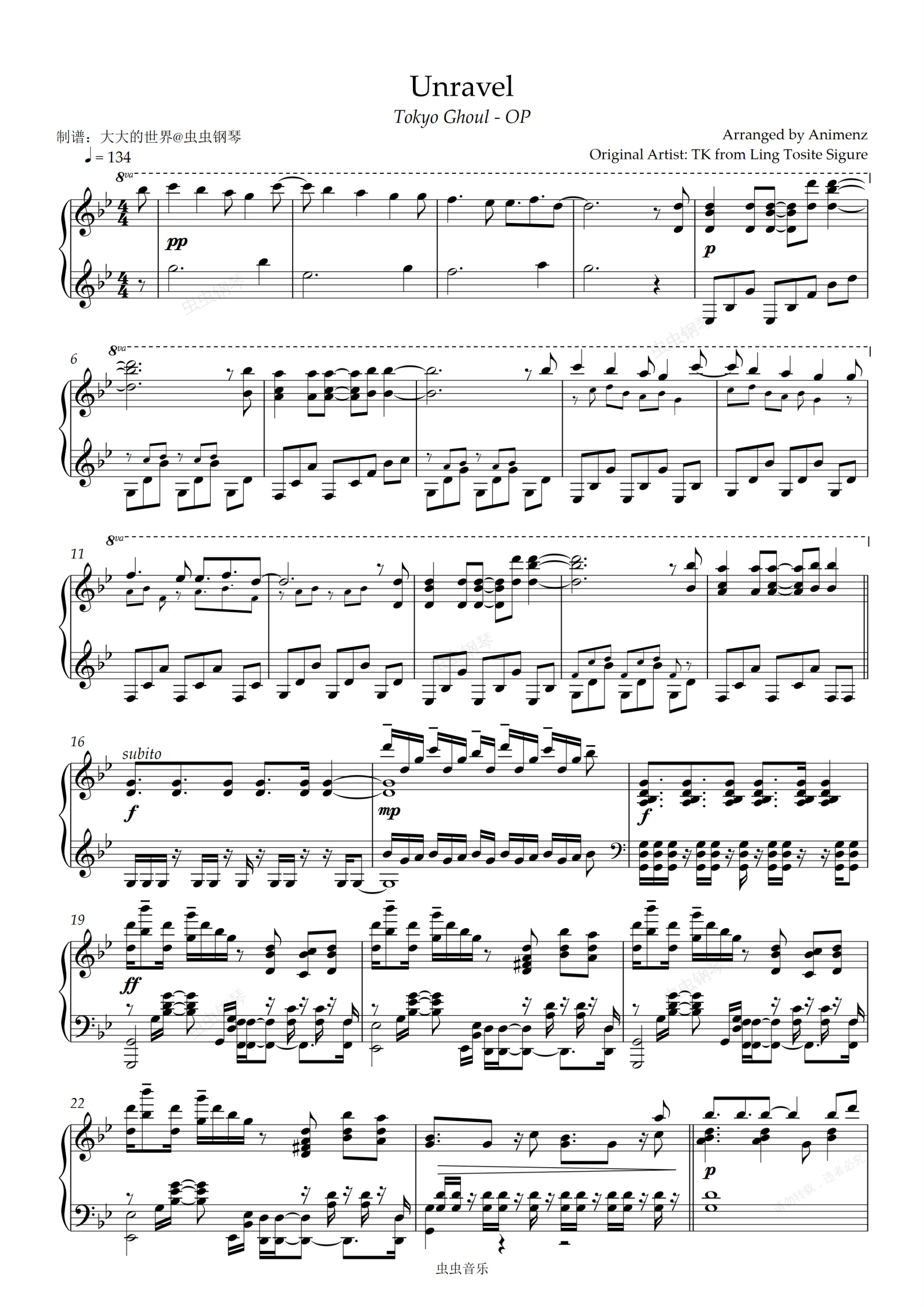 钢琴谱:【Animenz】Unravel - Tokyo Ghoul OP