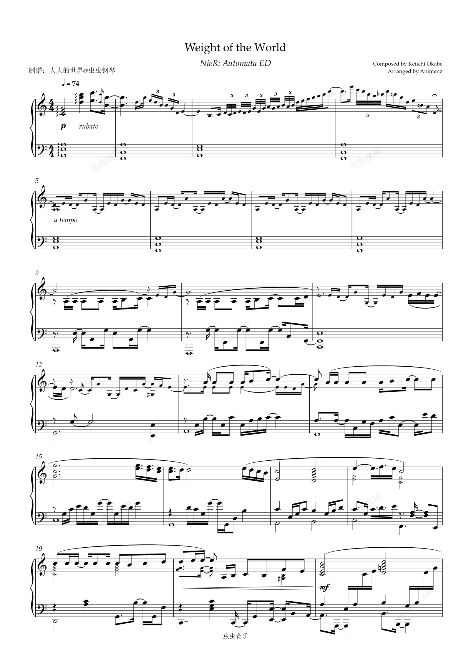 钢琴谱:【Animenz】Weight of the World - NieR: Automata ED
