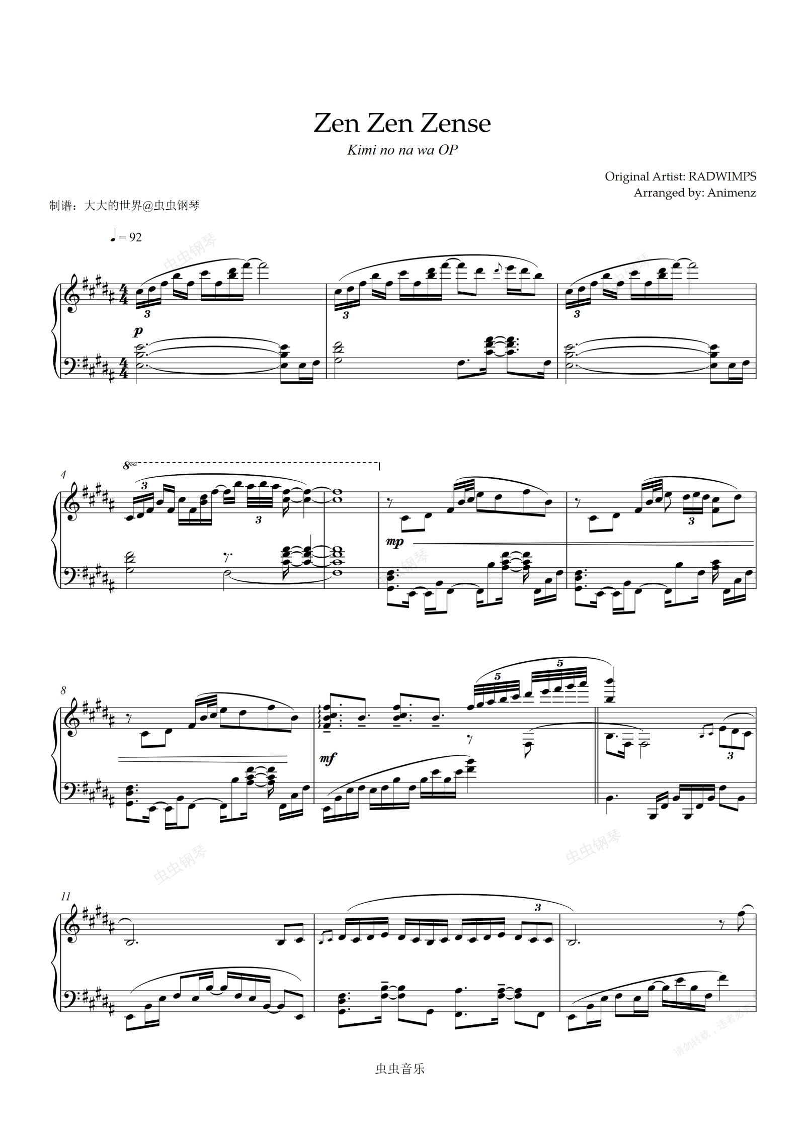 钢琴谱:【Animenz】Zen Zen Zense - Your Name. (Kimi no Na wa.) OST