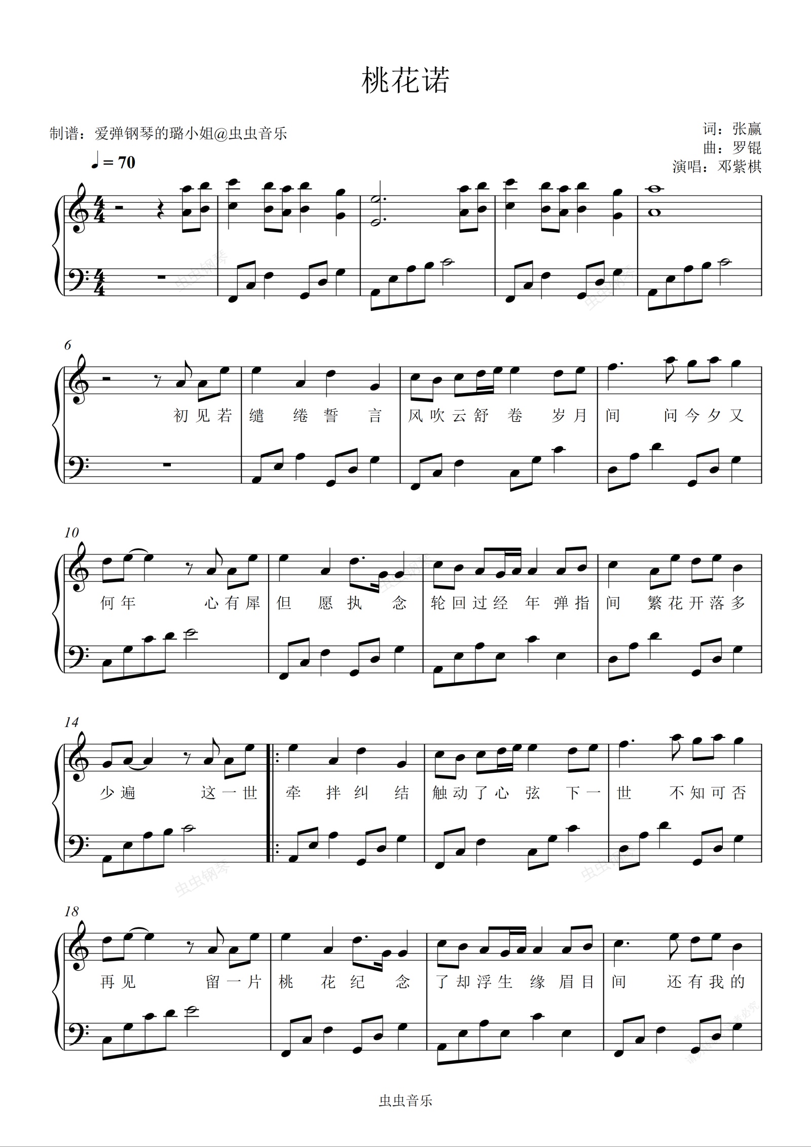 钢琴谱:桃花诺《上古情歌》电视剧片尾曲 - C调简单版 - 附歌词