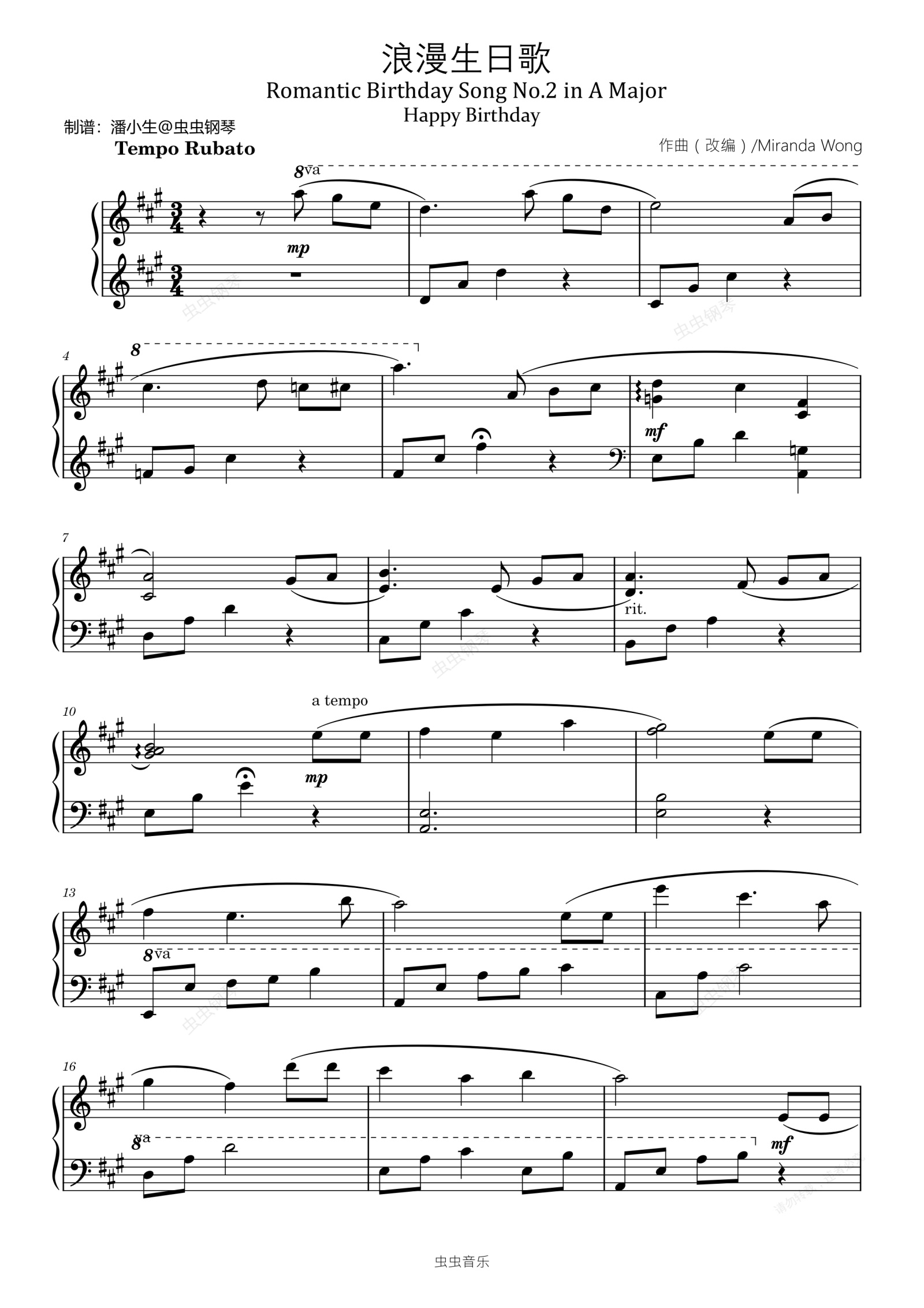 钢琴谱:浪漫生日歌 Romantic Birthday Song No.2 in A Major (Happy Birthday)