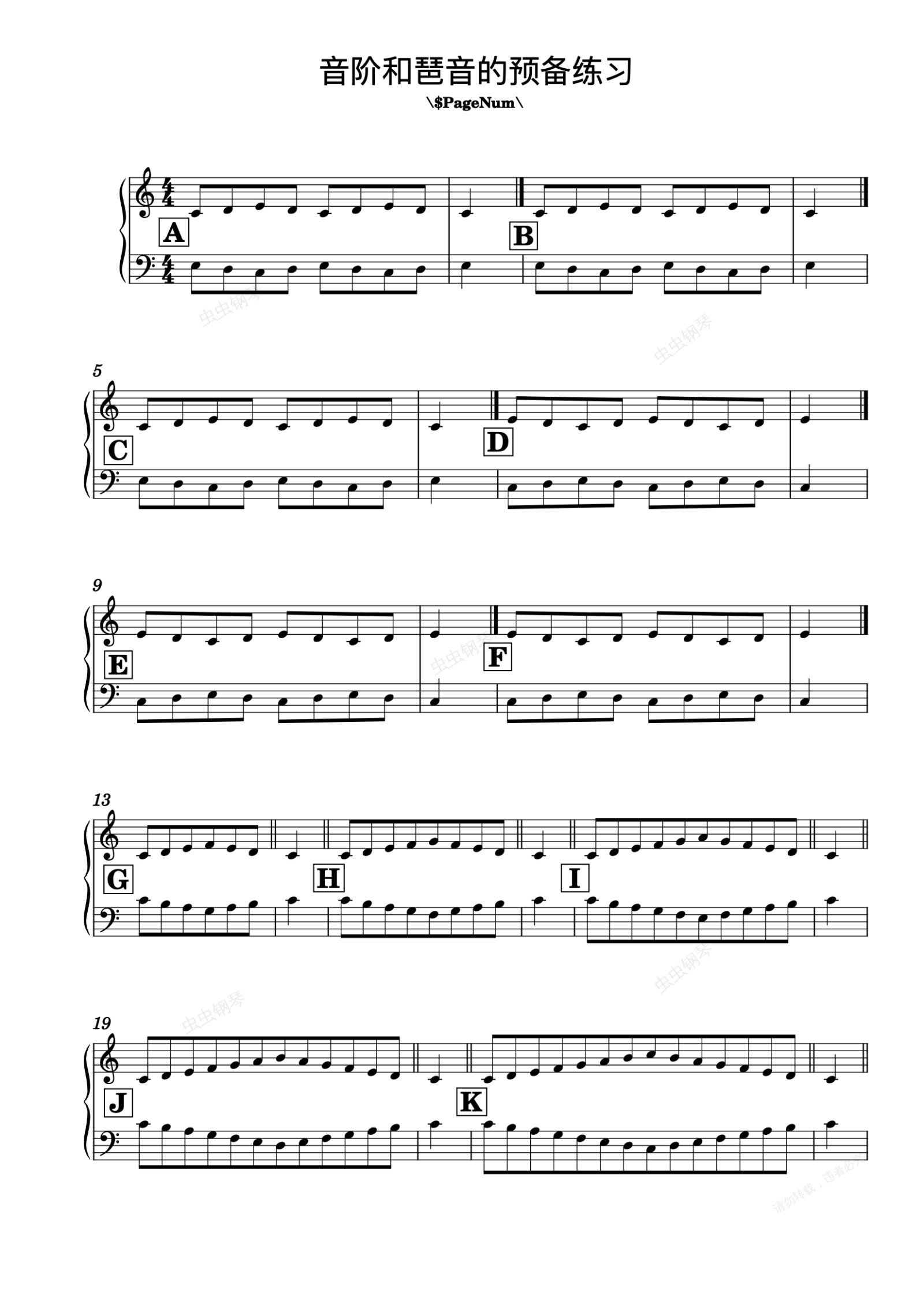 钢琴谱:音阶和琶音的预备练习2-1.1