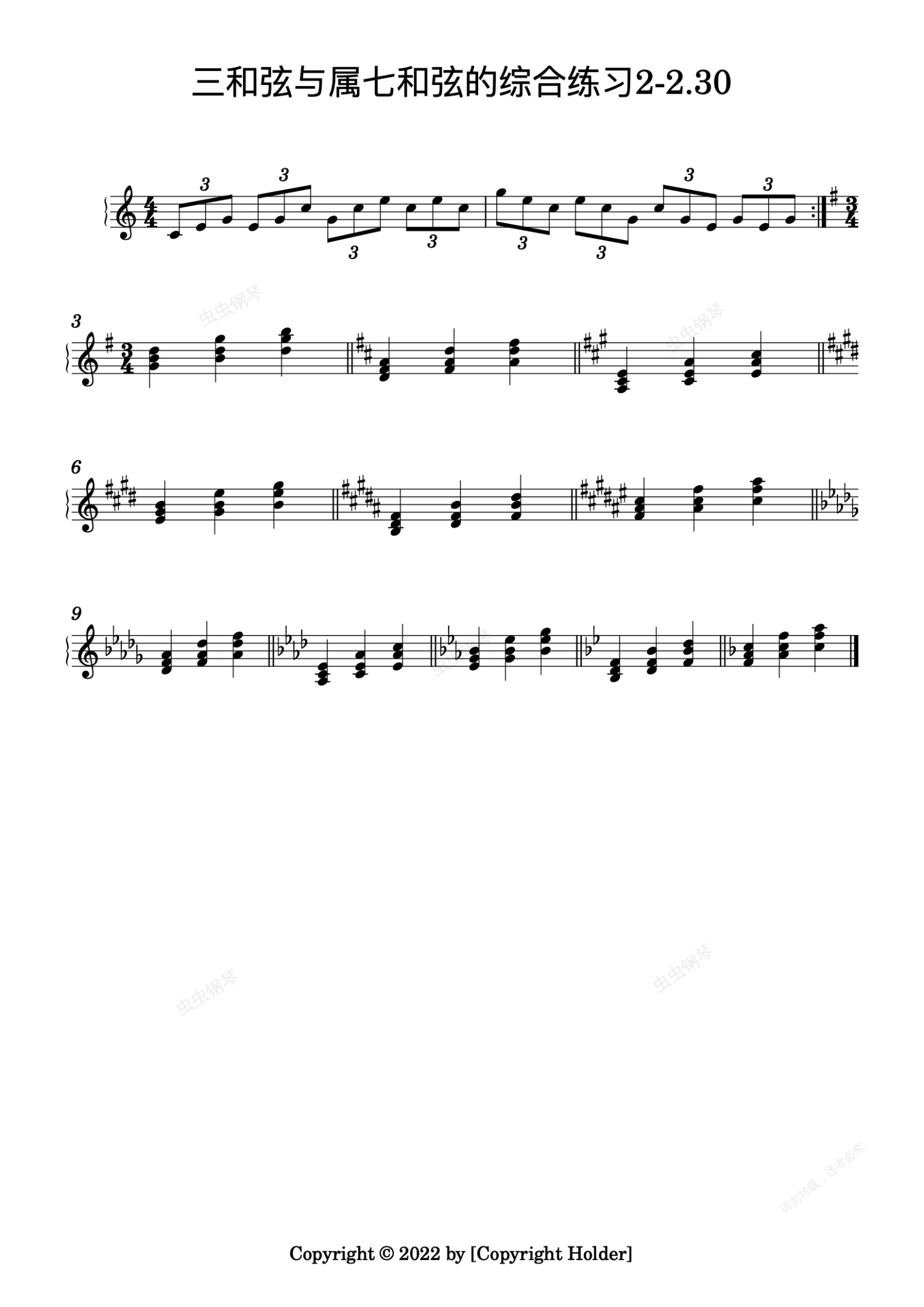 钢琴谱:三和弦与属七和弦的综合练习3-2.1