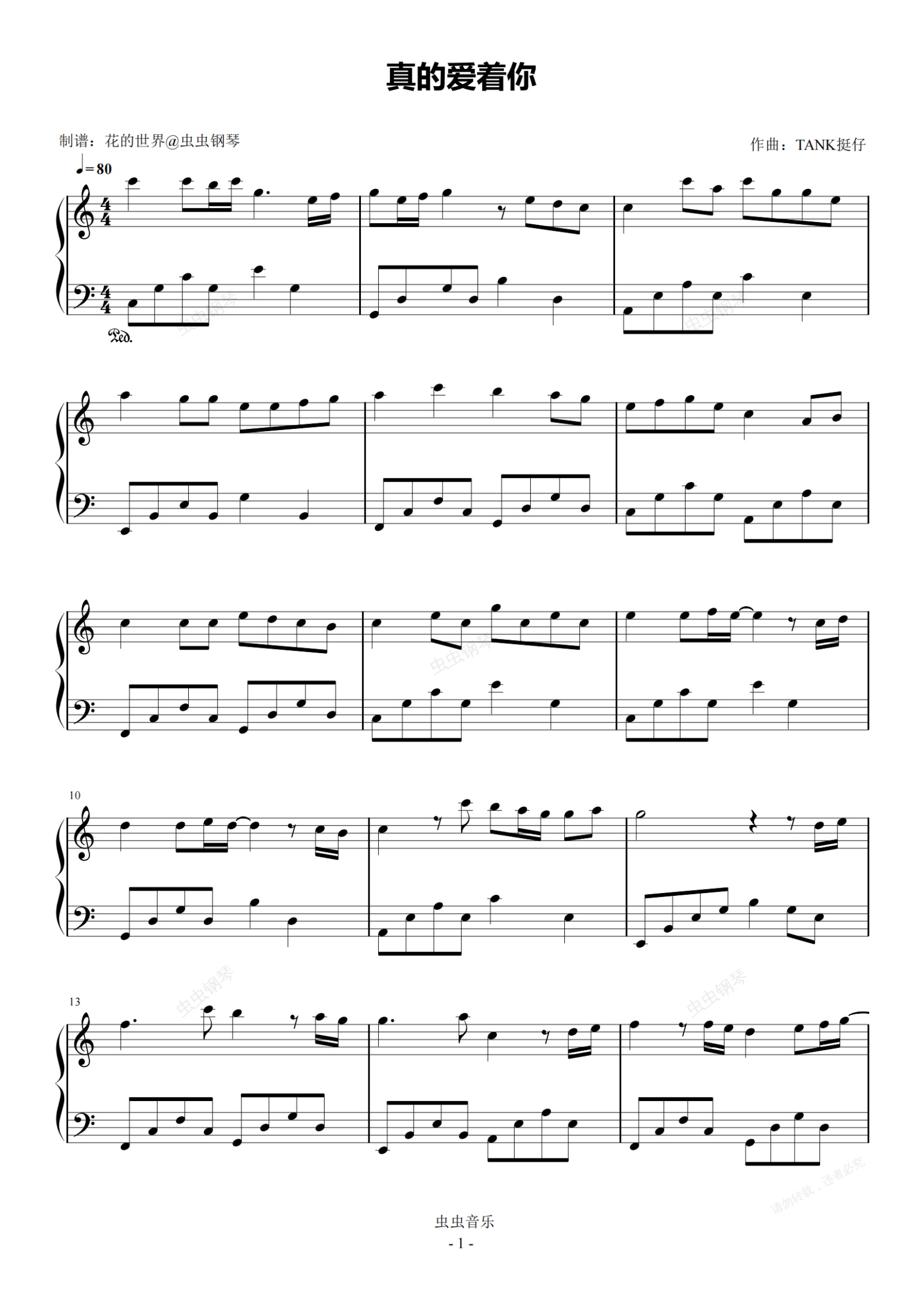 钢琴谱:真的爱着你  C调简易版 Tank挺仔