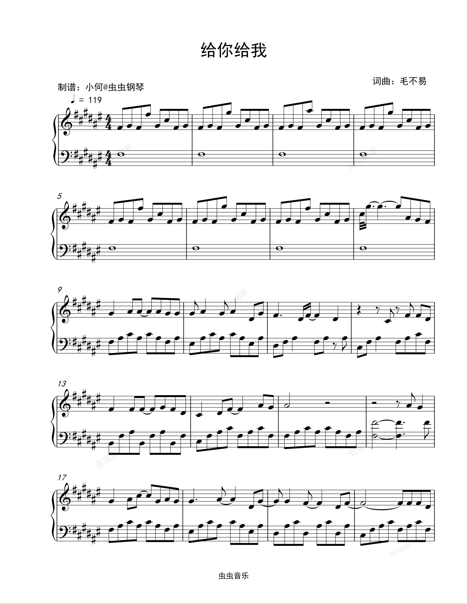 钢琴谱:给你给我-一生一世插曲-毛不易