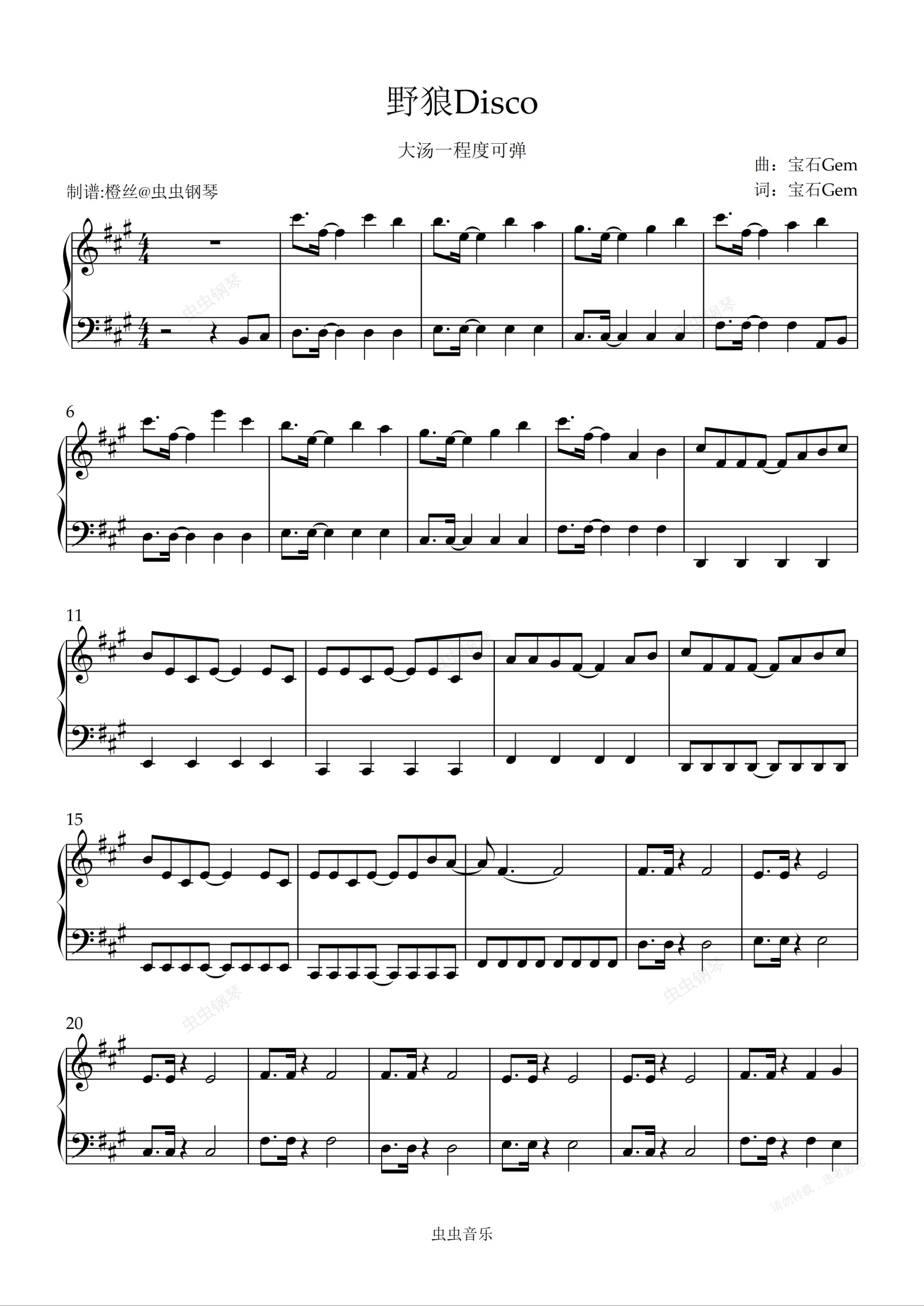 钢琴谱:野狼Disco(大汤一程度可弹)