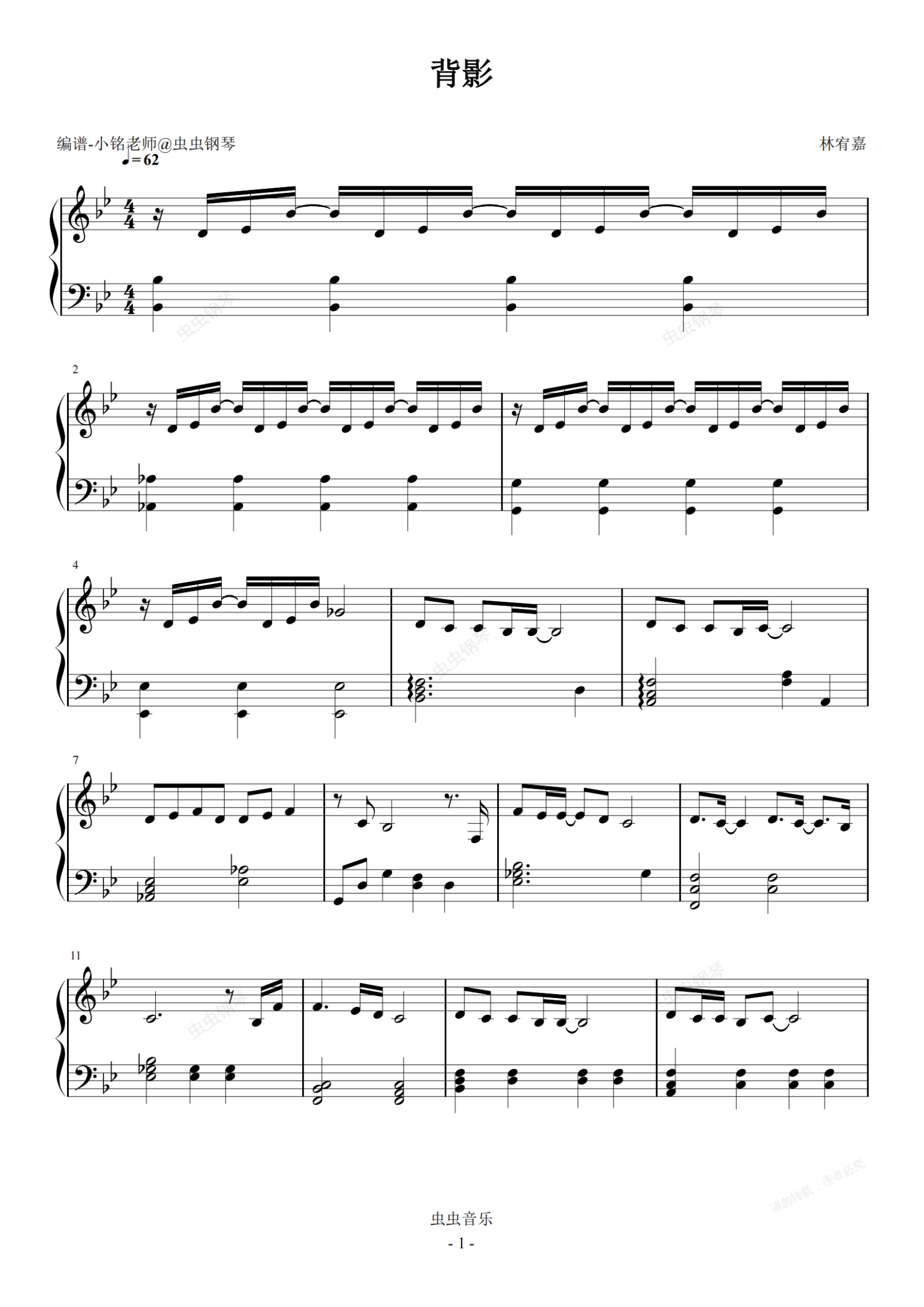 钢琴谱:背影【降B调】