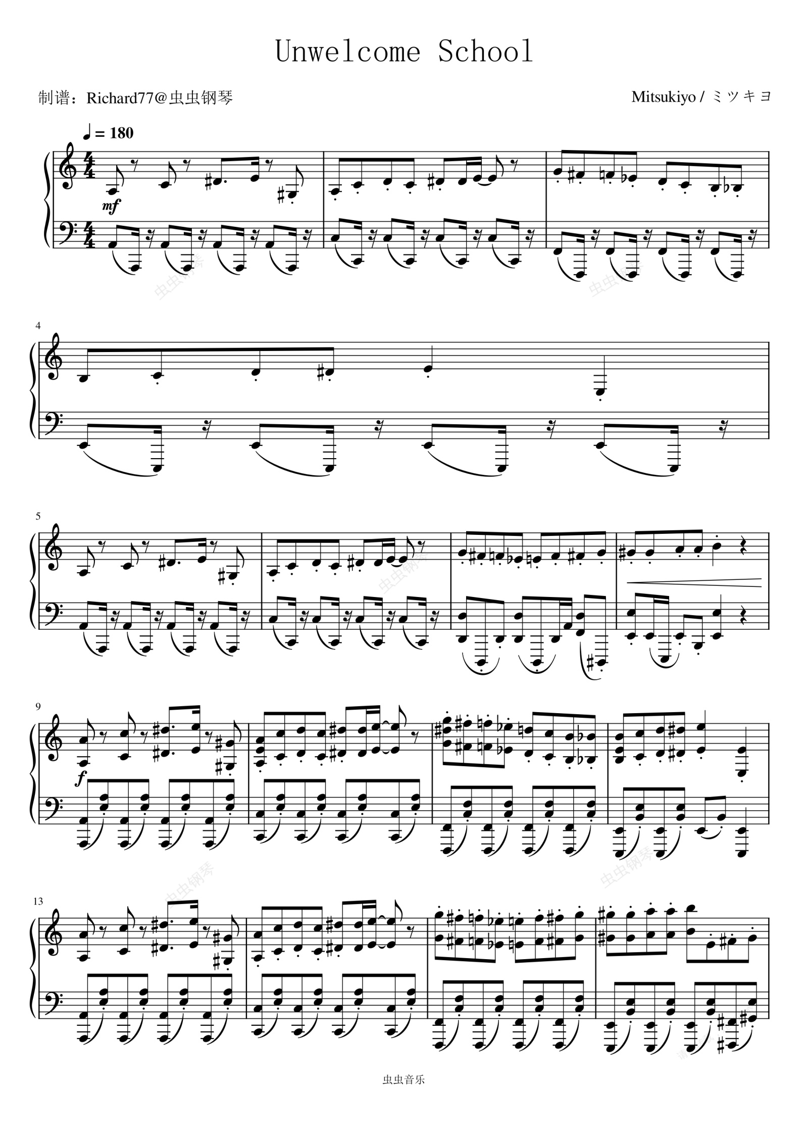 钢琴谱:Unwelcome School - Mitsukiyo / ミツキヨ