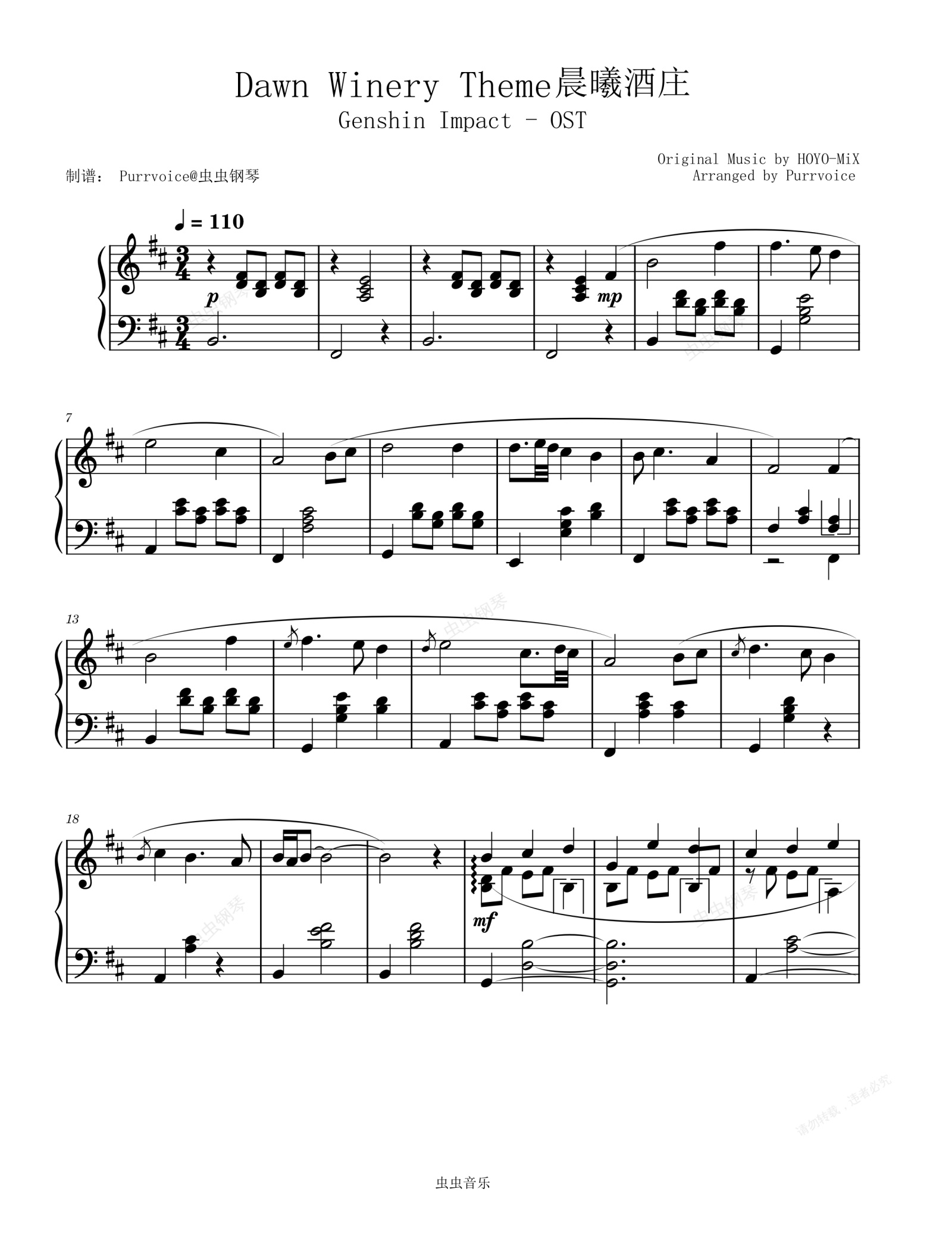 钢琴谱:晨曦酒庄 - 原神OST钢琴改编