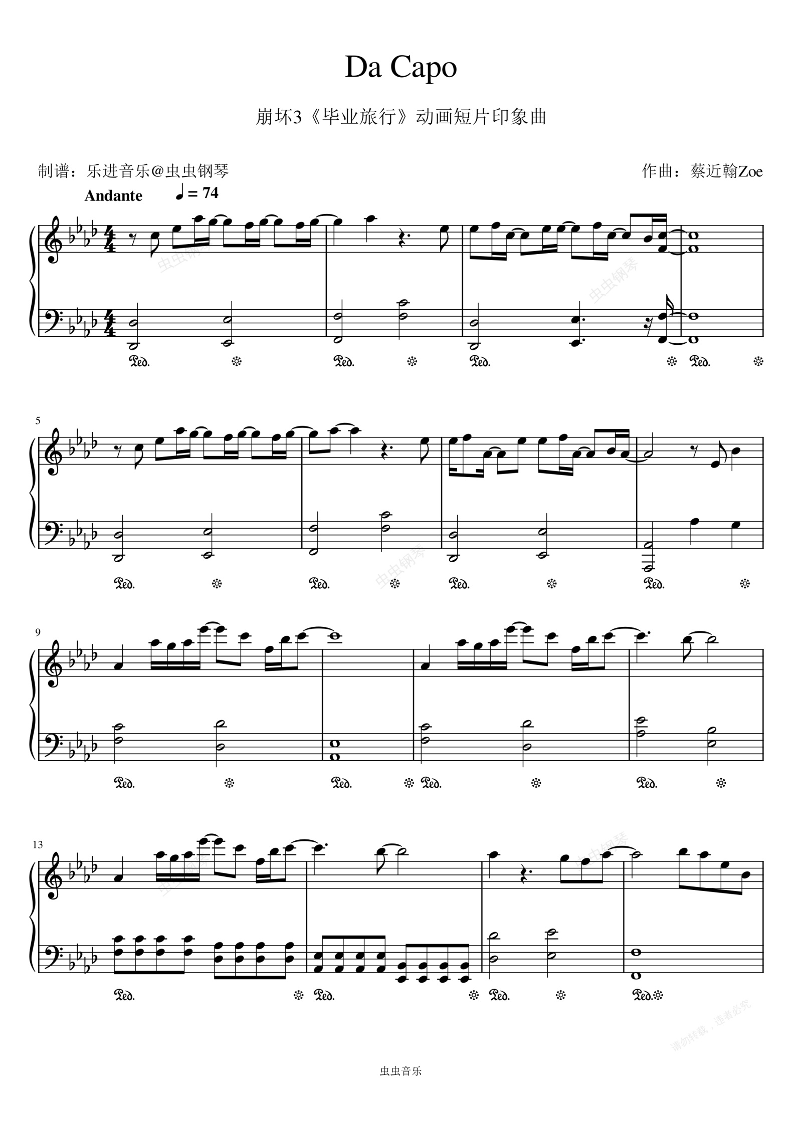 钢琴谱:《Da Capo》崩坏3,毕业旅行动画短片印象曲