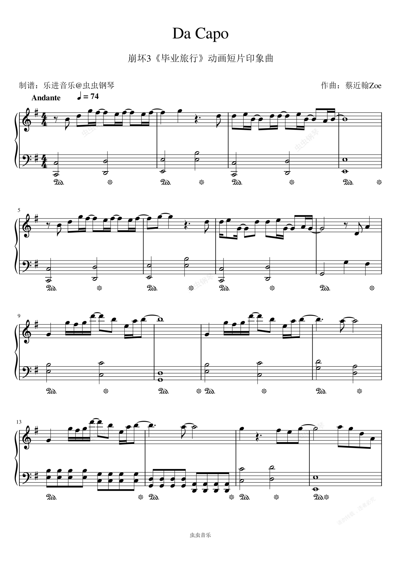钢琴谱:《Da Capo》G调简易版