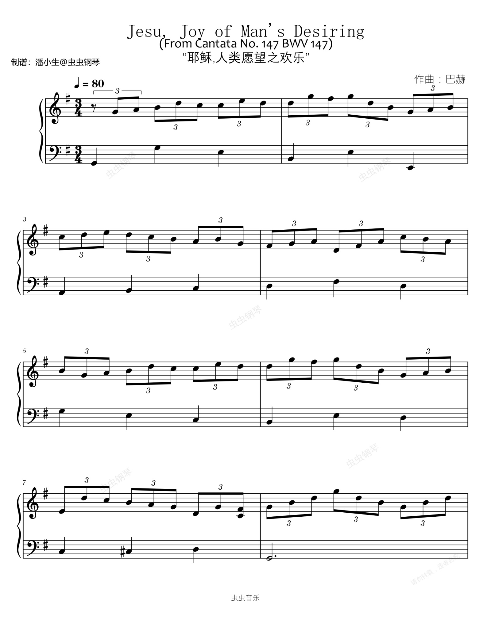 钢琴谱:Jesu, Joy of Man's Desiring 巴赫 “耶稣,人类愿望之欢乐”独奏简单版