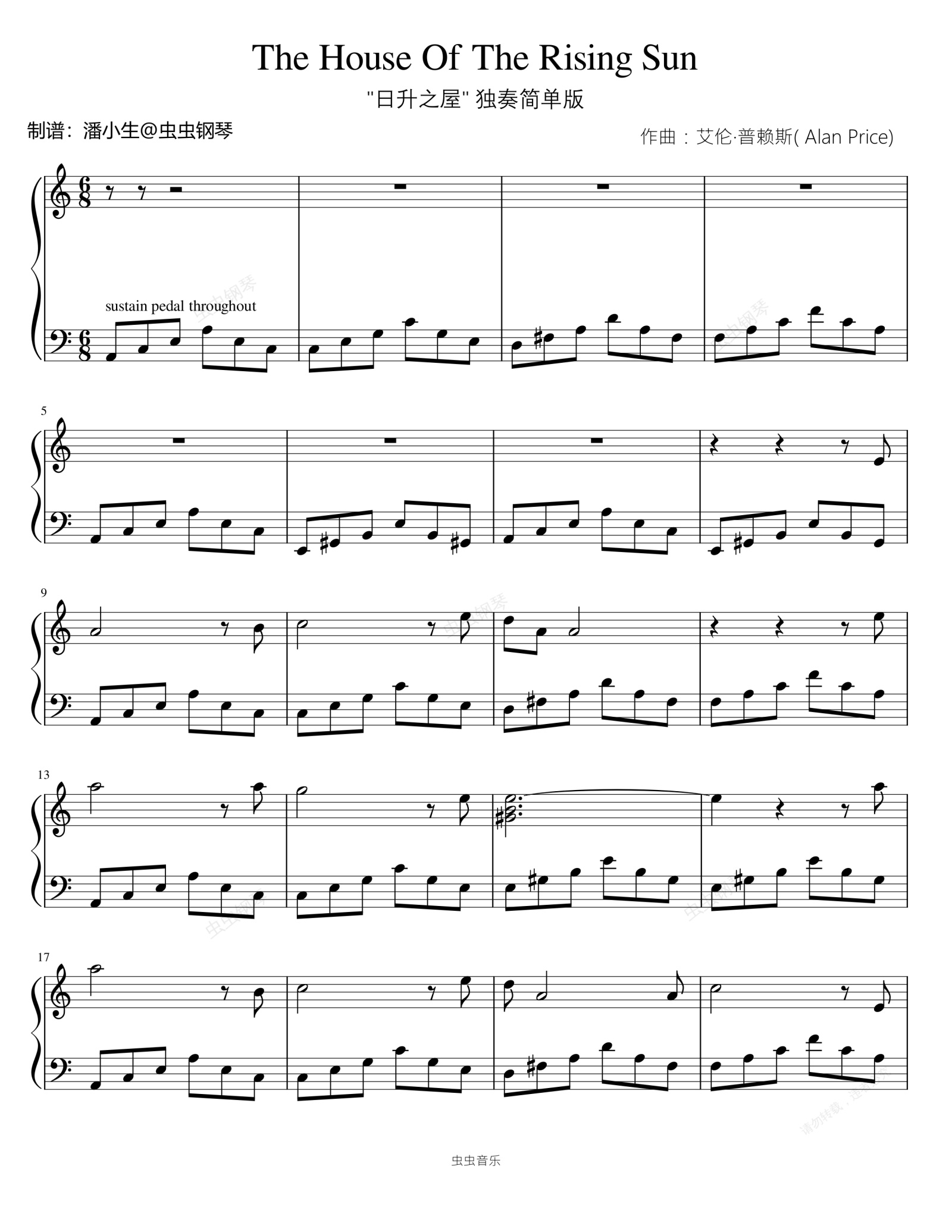 钢琴谱:House Of The Rising Sun "日升之屋" 独奏简单版