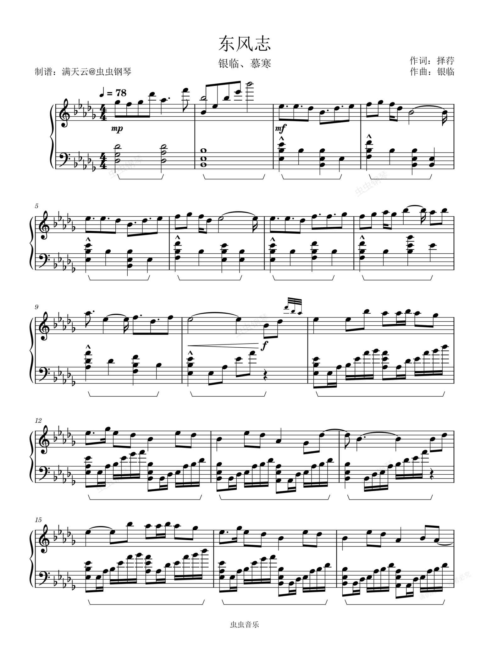 钢琴谱:东风志(极简抒情改编谱)