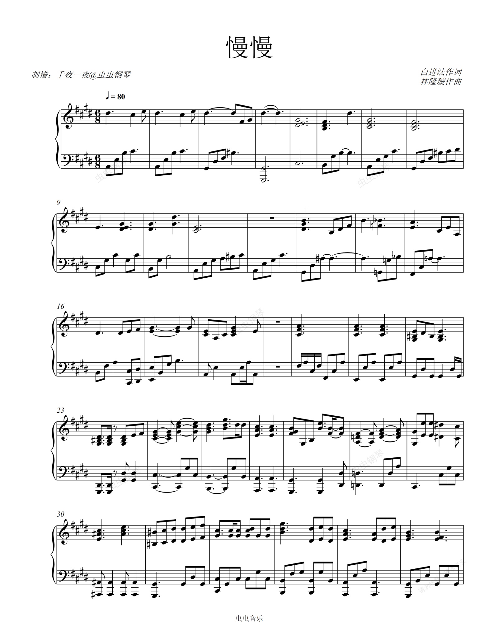 钢琴谱:王乃恩 - 慢慢 (中国好声音第一季 第7期)