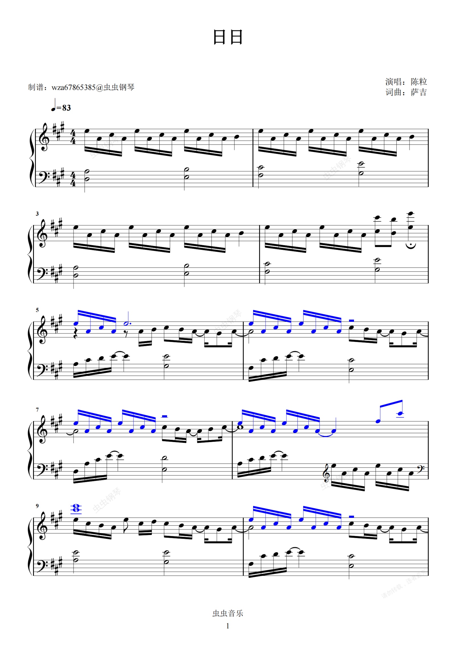 钢琴谱:日日