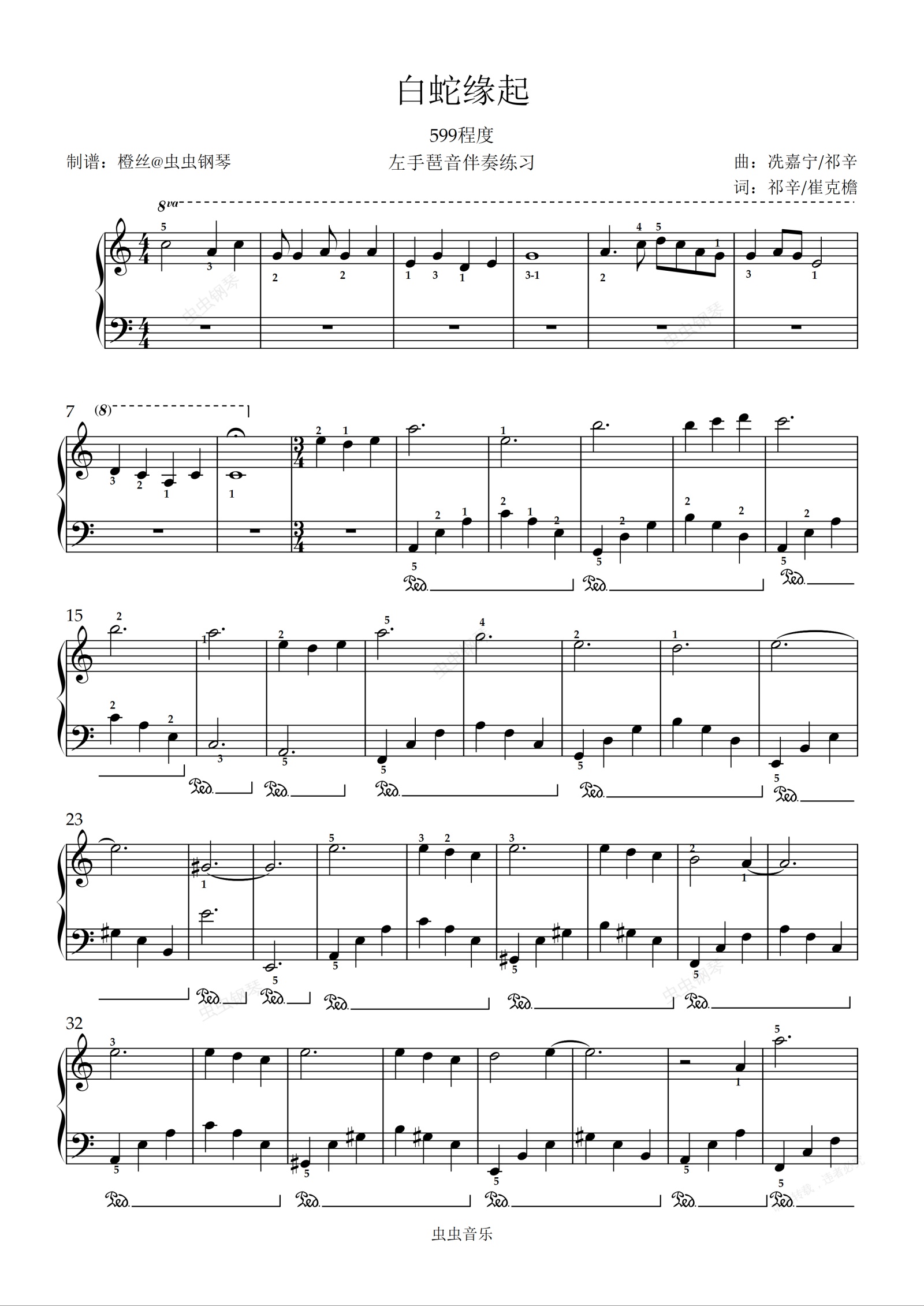 钢琴谱:白蛇缘起(599程度左手琶音伴奏练习)