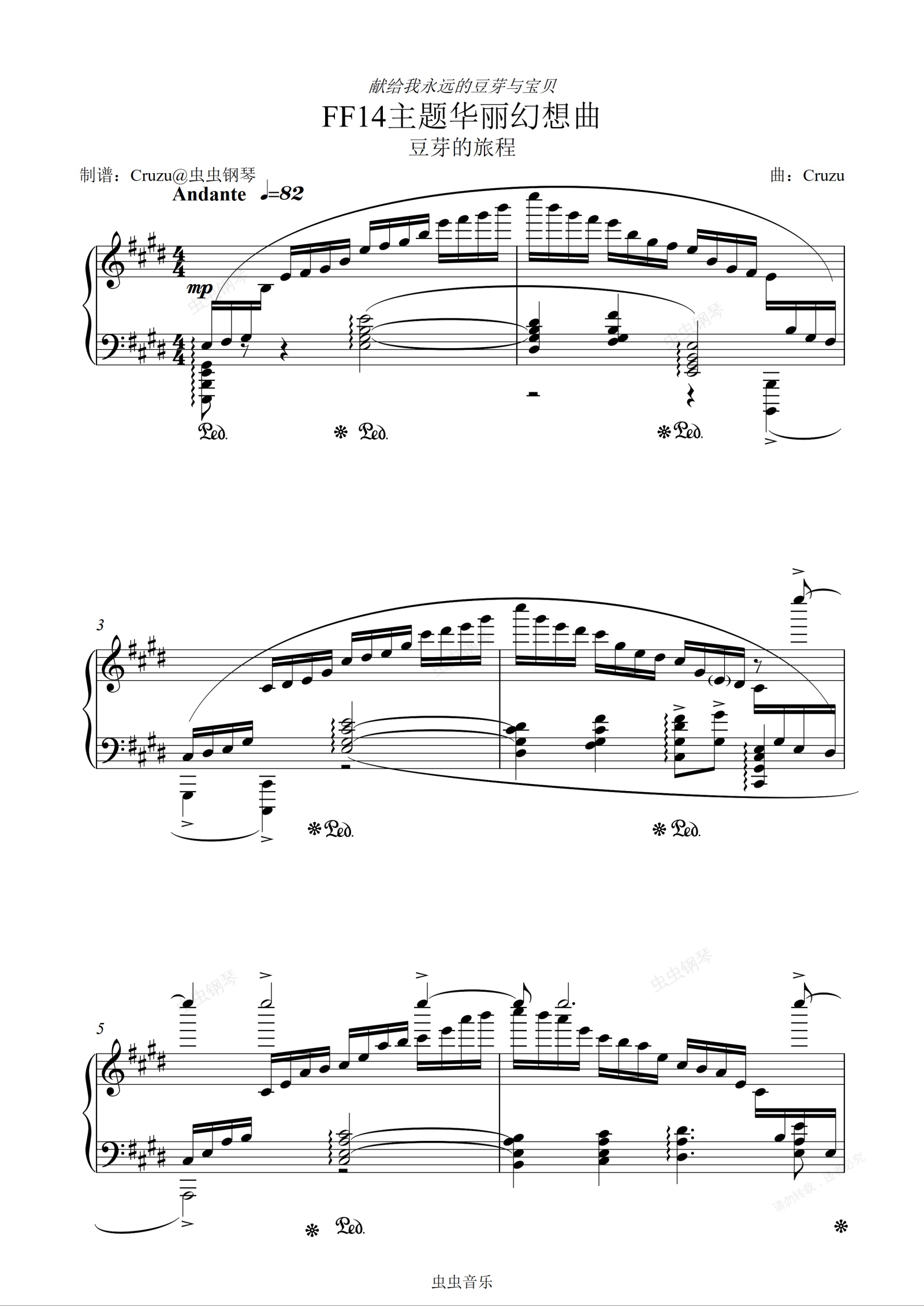 钢琴谱:FF14主题华丽幻想曲