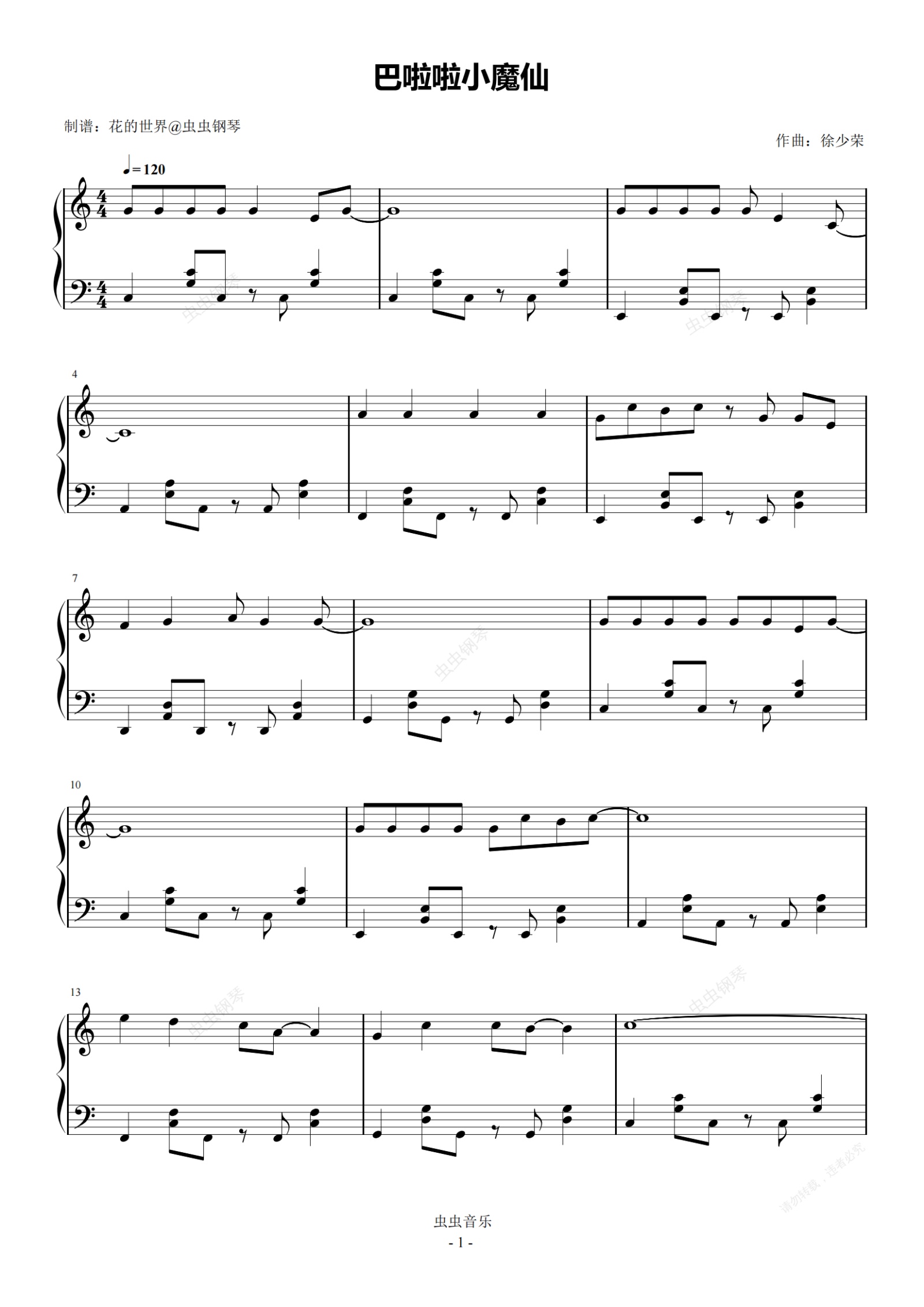 钢琴谱:巴啦啦小魔仙 C调简易 流行经典